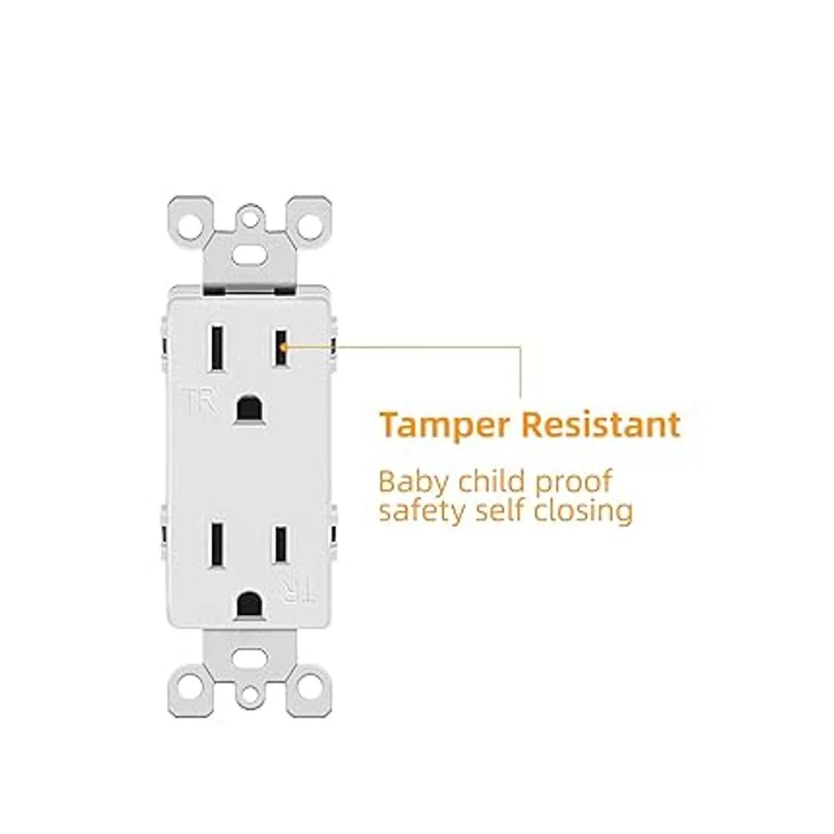 Micmi Outlet Decora Receptáculo, 15 amperios, 125 voltios, resistente a manipulaciones, conexión a tierra con certificación UL, blanco, 15 A, 10 unidades