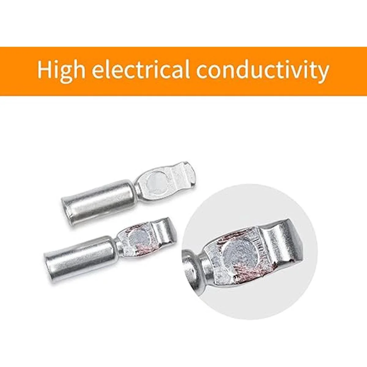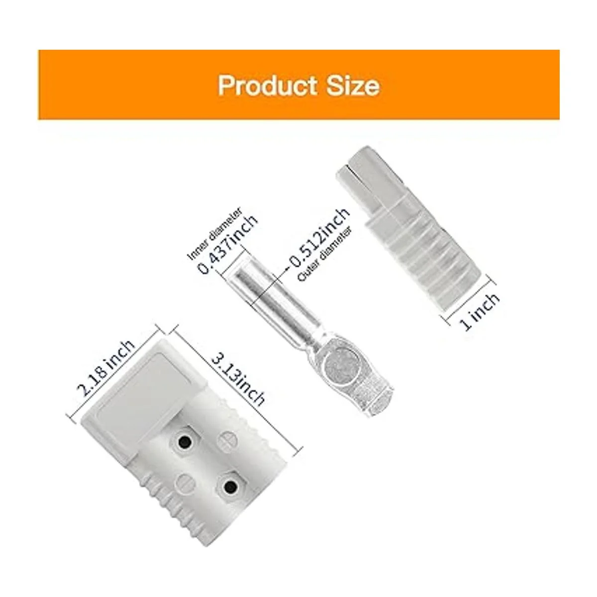 Instalación sencilla: se adapta a cable de 1/0 AWG; capacidad de 175 amperios. Simplemente coloca el cable en el terminal diámetro: 0.433 pulgadas, soldar o engarzar, luego desliza en la parte posterior del enchufe y bloquea en su lugar