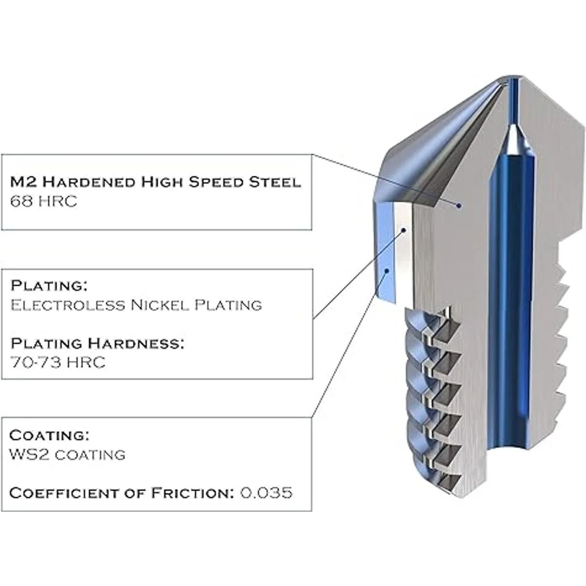 Acero endurecido M2 de alta velocidad con chapado en níquel electroless y revestimiento WS2