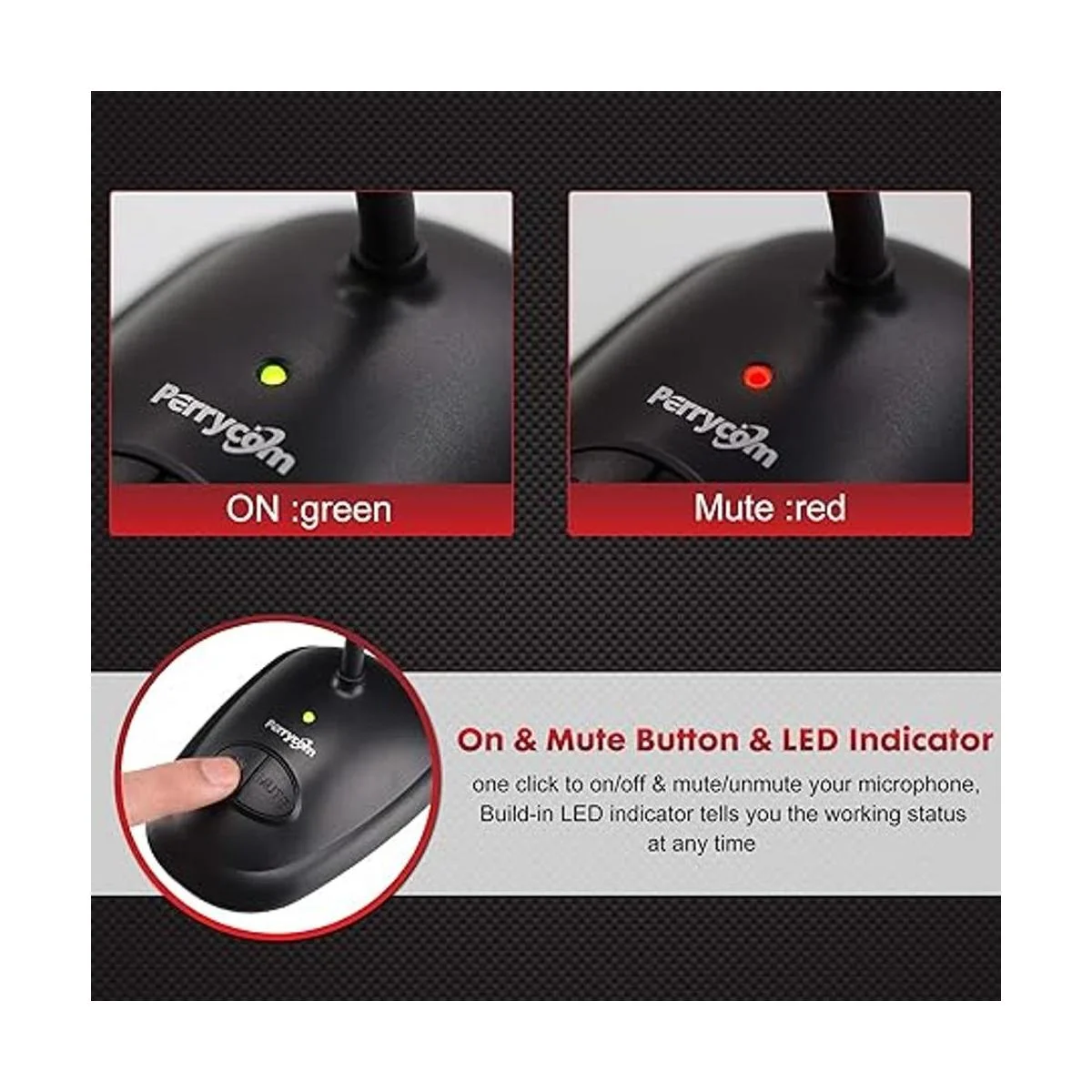 Botón de encendido y silencio e indicador LED: un clic para encendido/apagado y silenciar tu micrófono, indicador LED integrado que te indica el estado de trabajo en cualquier momento
