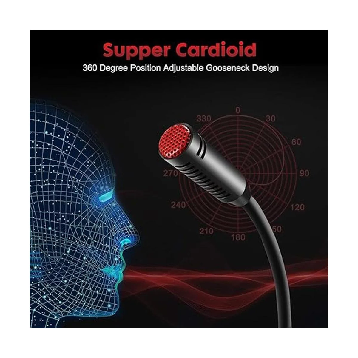 Diseño de cuello de cisne ajustable de 360 grados: adopta el diseño de tubo de cuello de cisne de metal con patrón polar cardioide que recoge el sonido de 360 grados con alta sensibilidad, en la mejor ubicación posible para el sonido de tu grabación, juegos de PC, Skype, divtación de voz dragón. y habla con Cortana