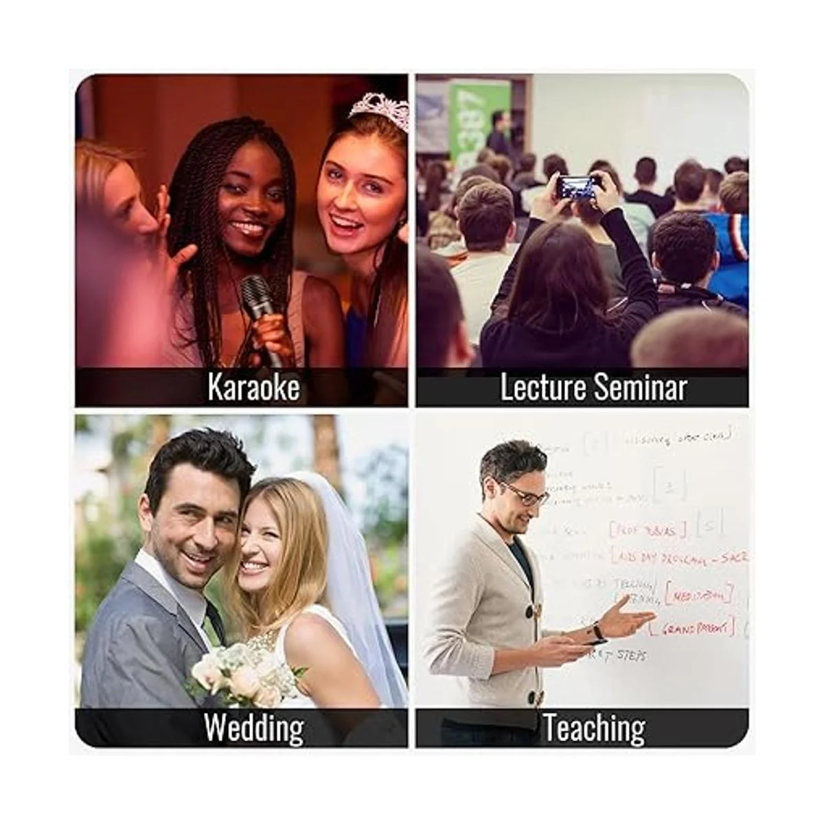 Bluetooth inalámbrico La función de reproducción inalámbrica es más conveniente para jugar sin el problema de una conexión de cable. Se puede conectar a teléfonos móviles, computadoras y PAD a través de Bluetooth en modo karaoke. Con este micrófono inalámbrico 2 en 1 y amplificador de voz, el sonido puede cubrir alrededor de 2,152.8 ft alrededor de 21,527.8 ft. pies.