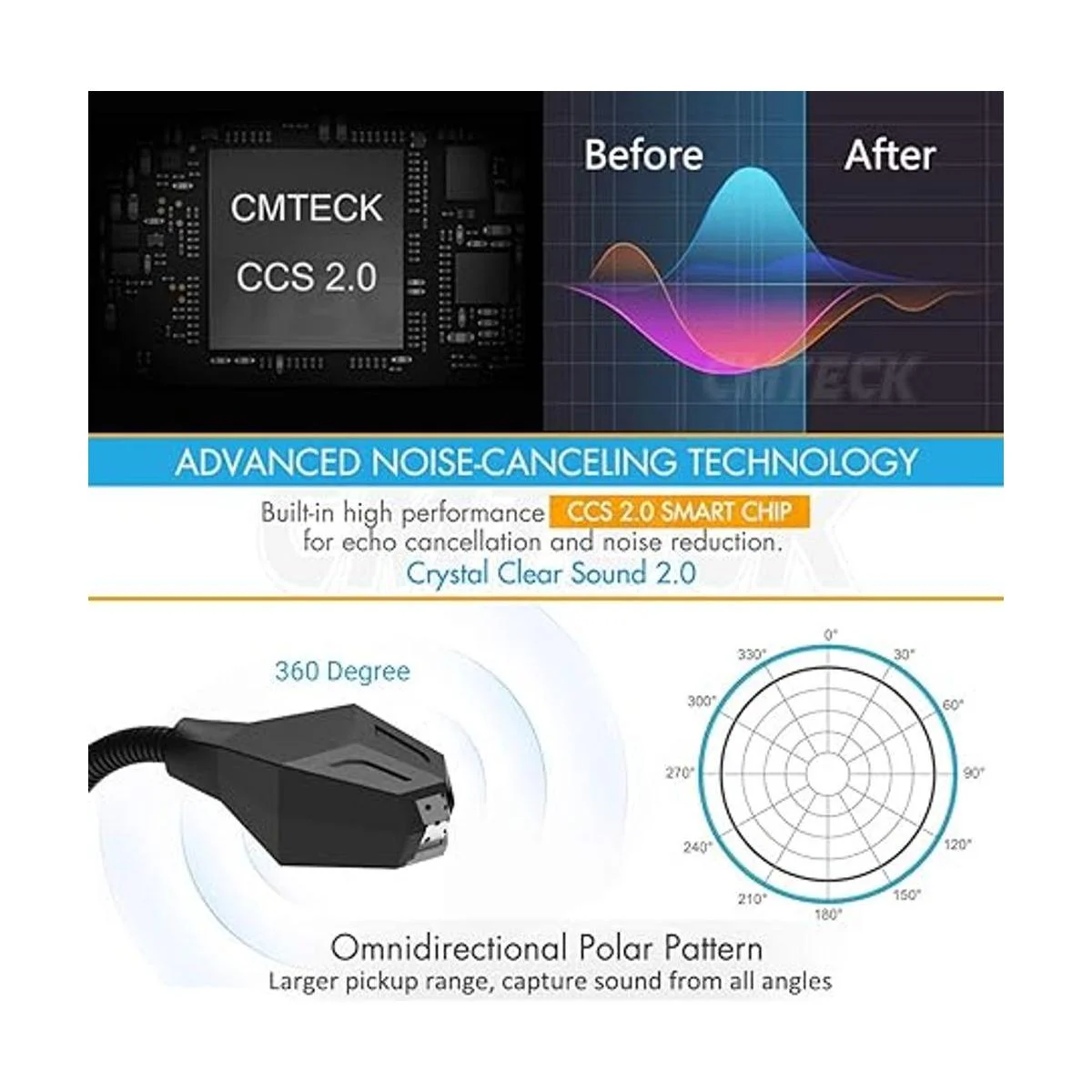 grabación suave y sonido claro para podcasting, chatear, grabar voces chip inteligente cmteck ccs2.0 de alto rendimiento integrado que puede bloquear eficazmente el ruido de fondo