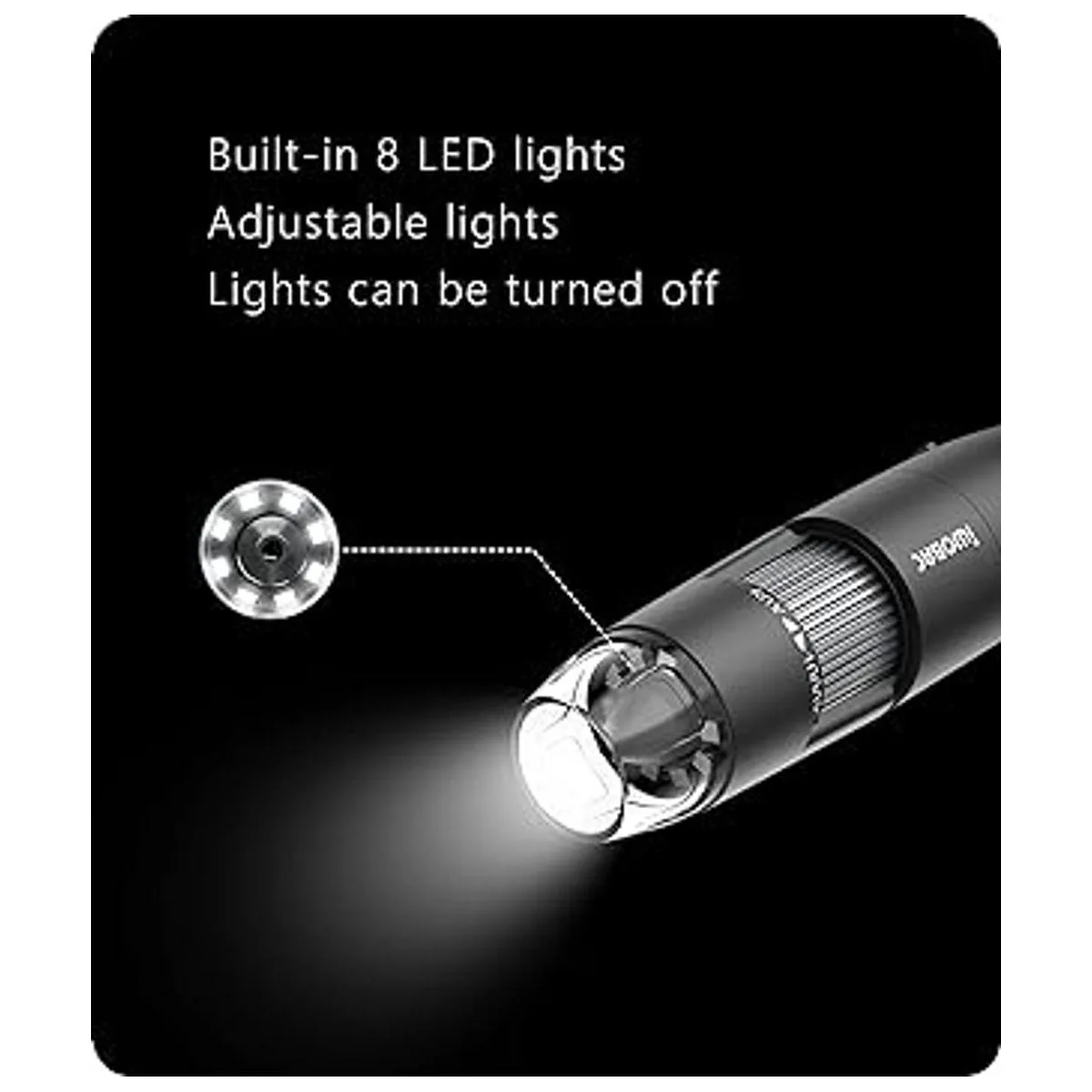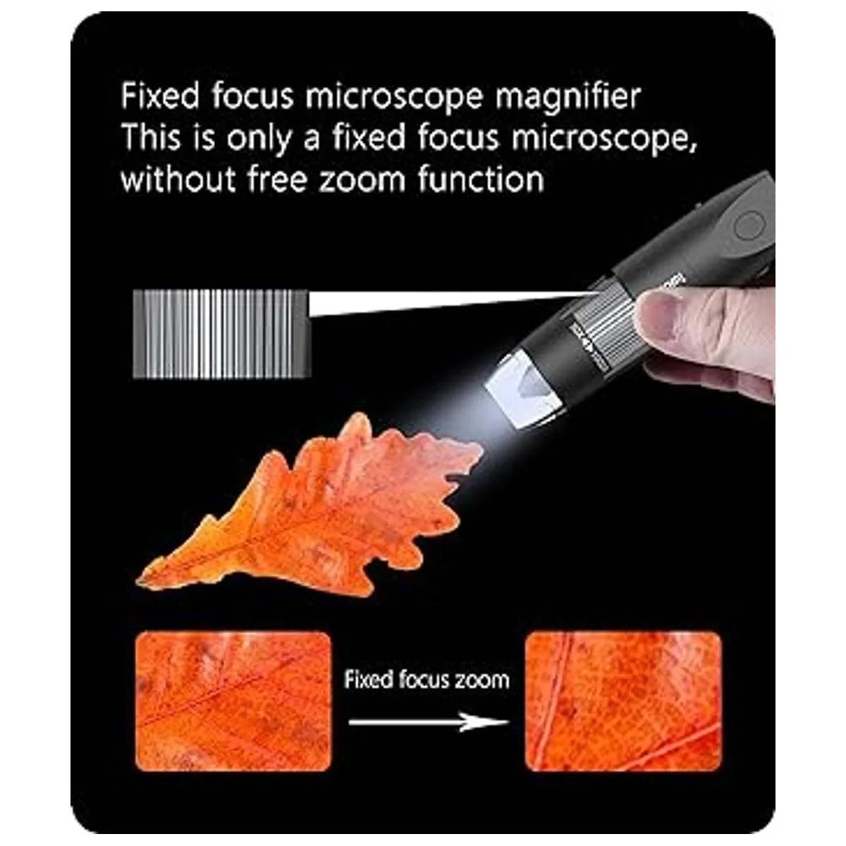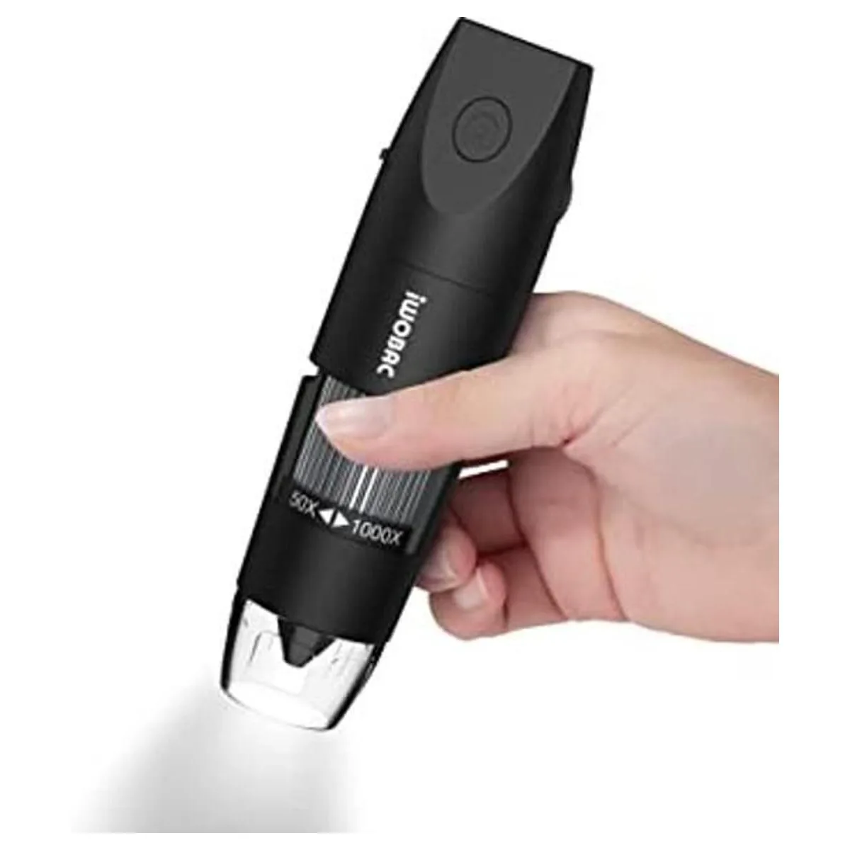 Microscopio digital, bolsillo inalámbrico, microscopios USB de mano, 50 x 1000 x zoom fijo HD con LED, cámara de inspección compatible con iPhone, teléfono Android, MacBook, Windows PC negro