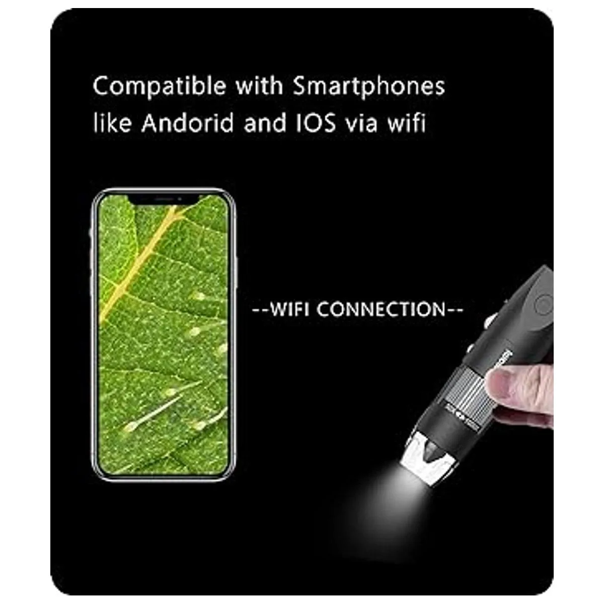 Función WiFi y USB: aplicación proporcionada. Este microscopio de teléfono celular no solo se puede conectar a tu smartphone a través de la función WiFi, sino que también se conecta a tu computadora a través de cable USB. Se puede cambiar según sea necesario, lo que es más conveniente e inteligente.