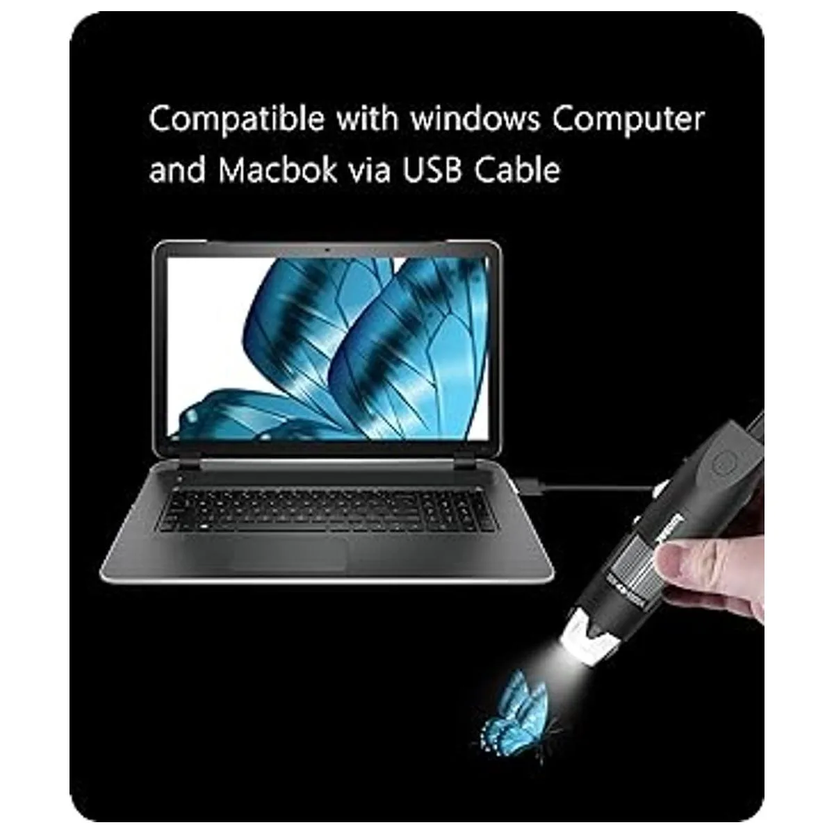 Mini microscopio de lupa: 2 millones de píxeles, calidad de imagen HD 1080P para smartphone, 720P para computadora, los 8 LED regulables integrados garantizan que el color de la imagen sea claro, brillante y verdadero. Sistema compatible: Android 6.0 o posterior, iOS 9.0 o posterior, Windows Vista/7/8/10 o posterior, MacOS X 10.8 o posterior.