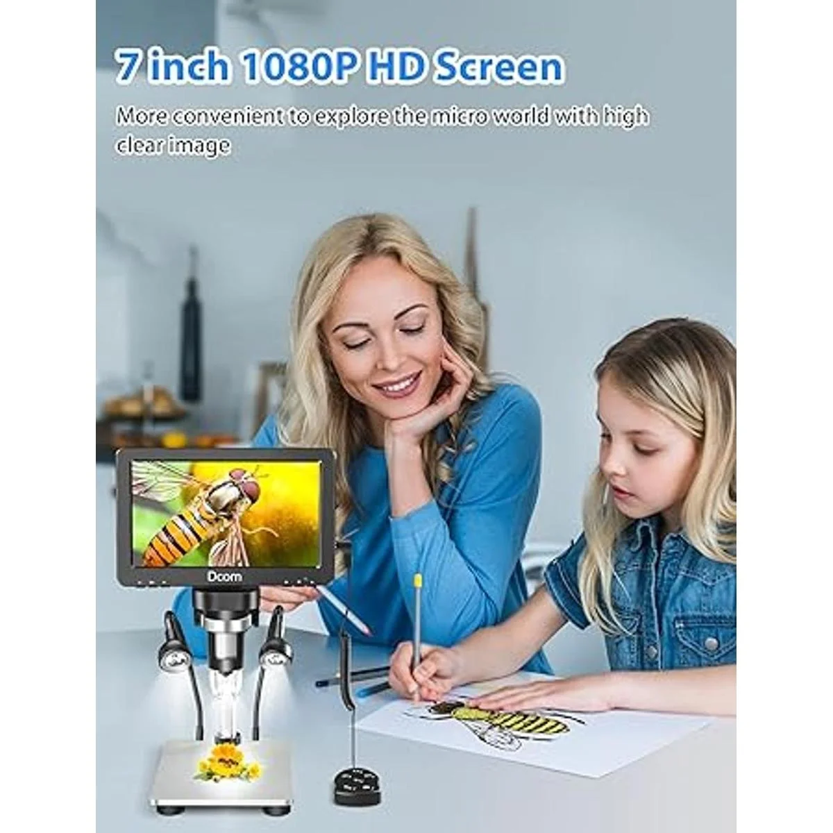 Pantalla LCD HD de 7 pulgadas: el microscopio digital Dcorn soporta 1080FHD, 1080P, 720P resolución de video disponible, 12MP, 10MP, 8MP, 5MP, 3MP resolución de fotos disponible, la tecnología de cámara de 12MP puede ayudarte a ver fácilmente los detalles claros de objetos pequeños. En comparación con el microscopio digital regular de 4.3 pulgadas, nuestra pantalla de 7 pulgadas es más grande, más intuitiva y clara, lo que te permite ver al instante y ajustar rápidamente la imagen para una observación fácil y precisa, soldadura, etc.