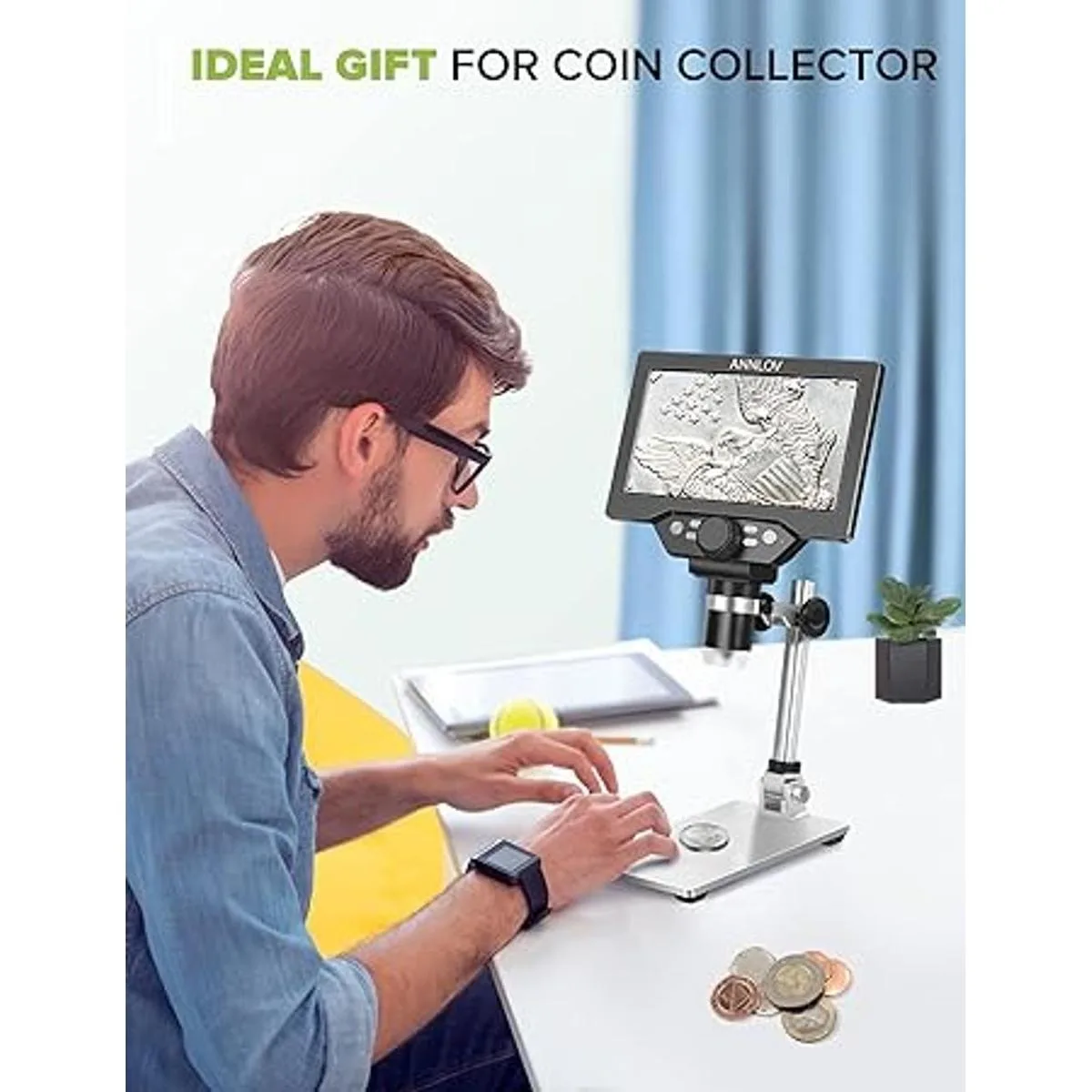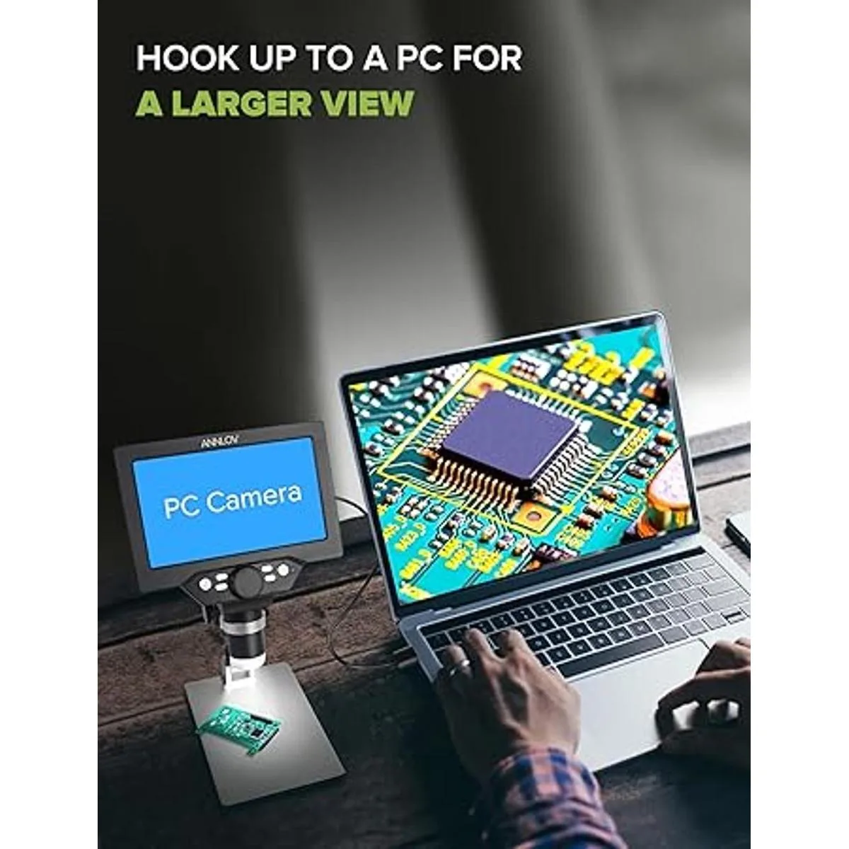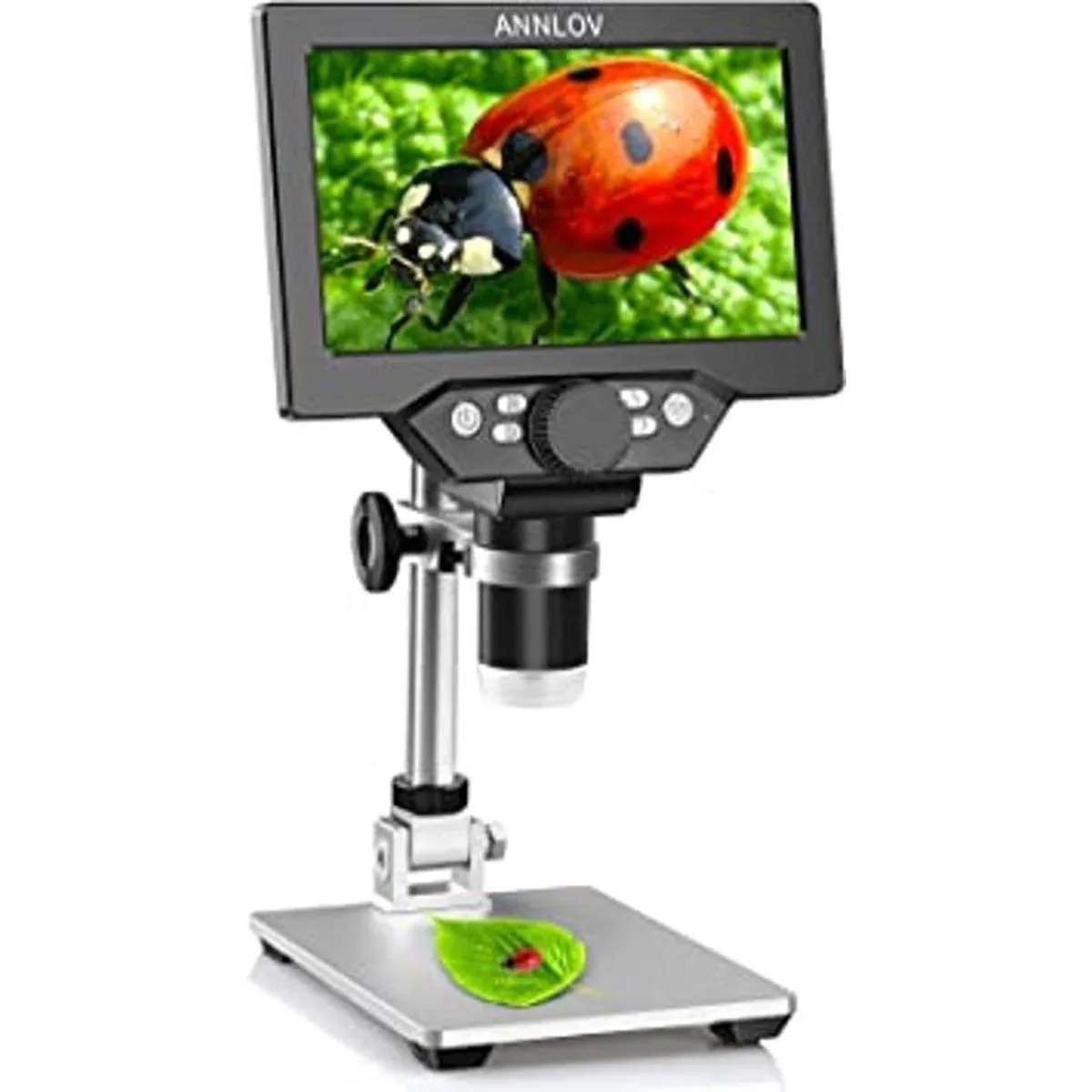 Pantalla LCD de 7 pulgadas: el microscopio digital LCD ANNLOV tiene una pantalla HD integrada de 7 pulgadas que te permite ver directamente, que es más grande, más clara y tiene mayor aumento que otros microscopios de pantalla similares de 4.3 pulgadas. Ideal para ver errores en monedas, texturas de hojas, texturas de piel, piezas finas en relojes, placas de circuito de soldadura y mucho más.