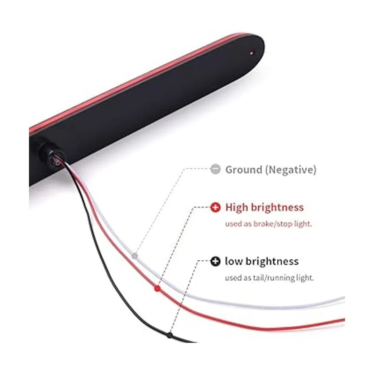 Conexión de cable simple: cable blanco para tierra, cable negro para luz trasera de bajo brillo y cable rojo para luz de freno de alto brillo.