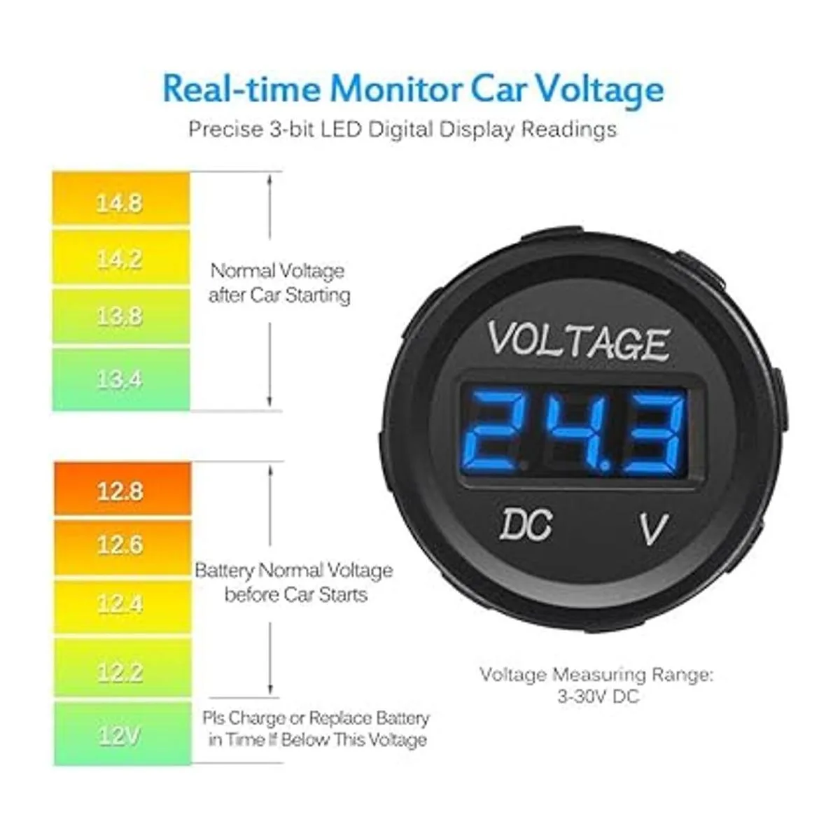 Se adapta a la mayoría de aplicaciones, tales como: cabinas marinas, aplicaciones de caravanas, camiones, 4 x 4S y voltímetro MICTUNING de RV es de alta calidad con precio completo, es la mejor opción para tu batería