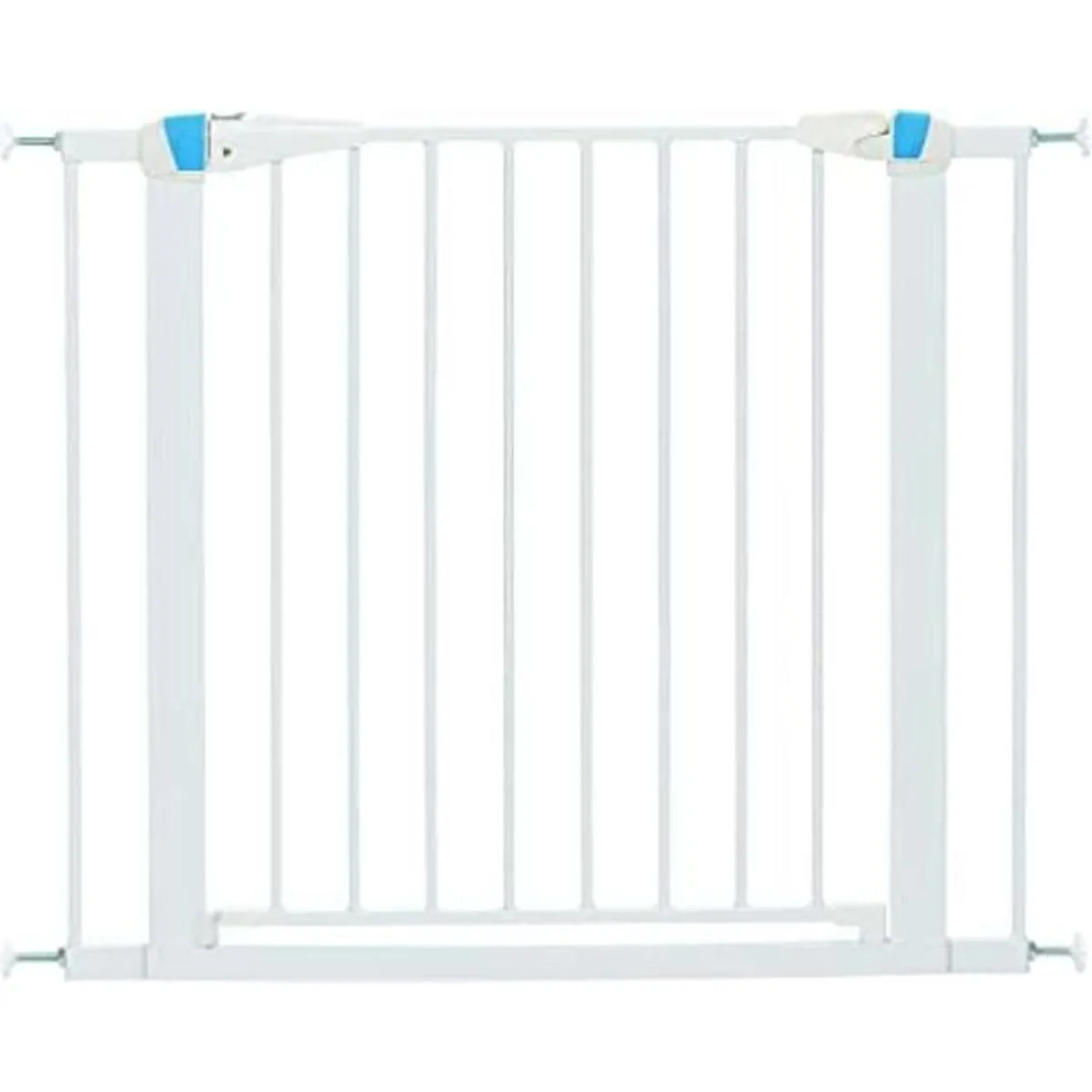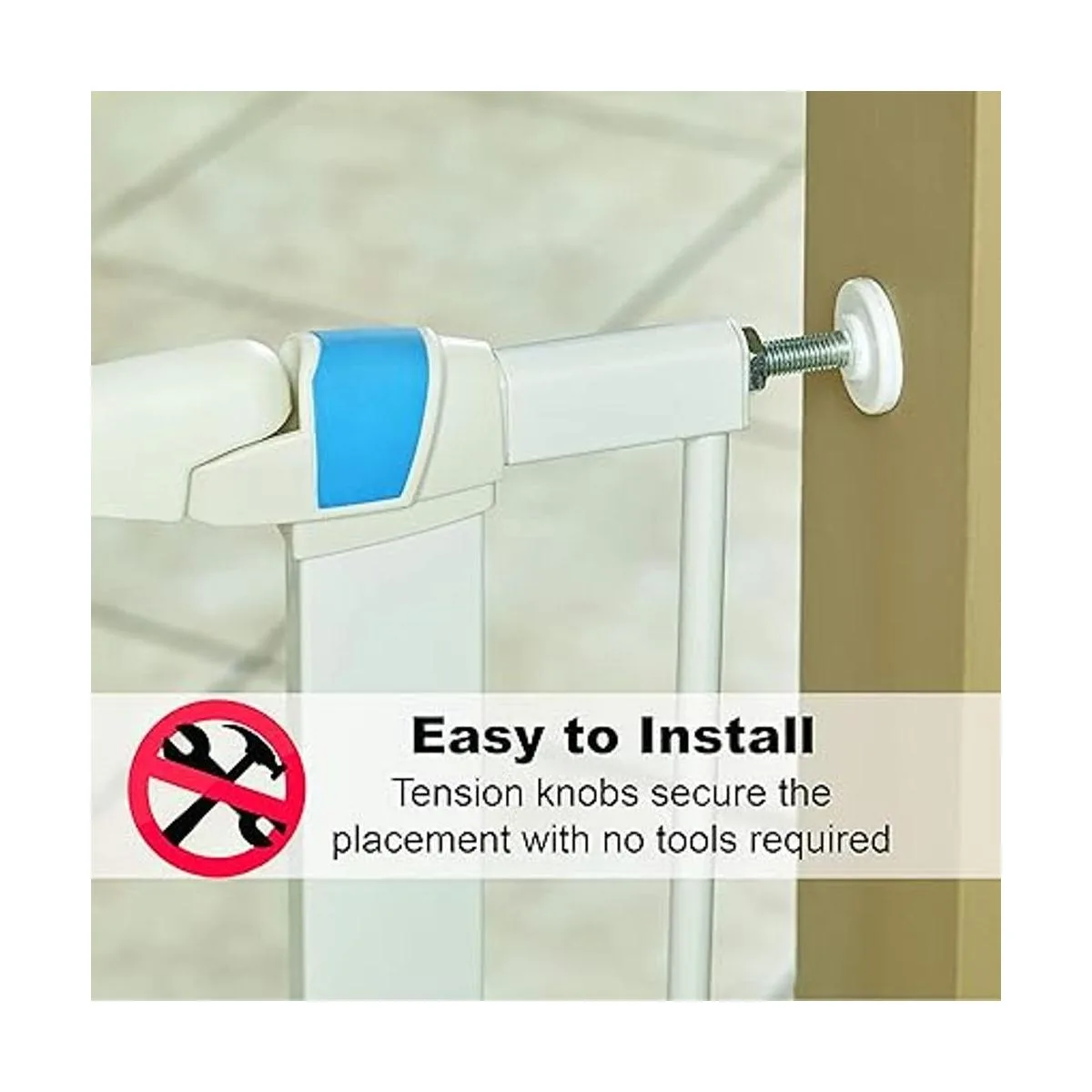 Práctica puerta para mascotas de 19 pulgadas de ancho se balancea en cualquier dirección el espacio entre barras verticales es de 2.25 pulgadas de ancho. La puerta de seguridad para mascotas no es tóxica, sin plomo y a prueba de masticar