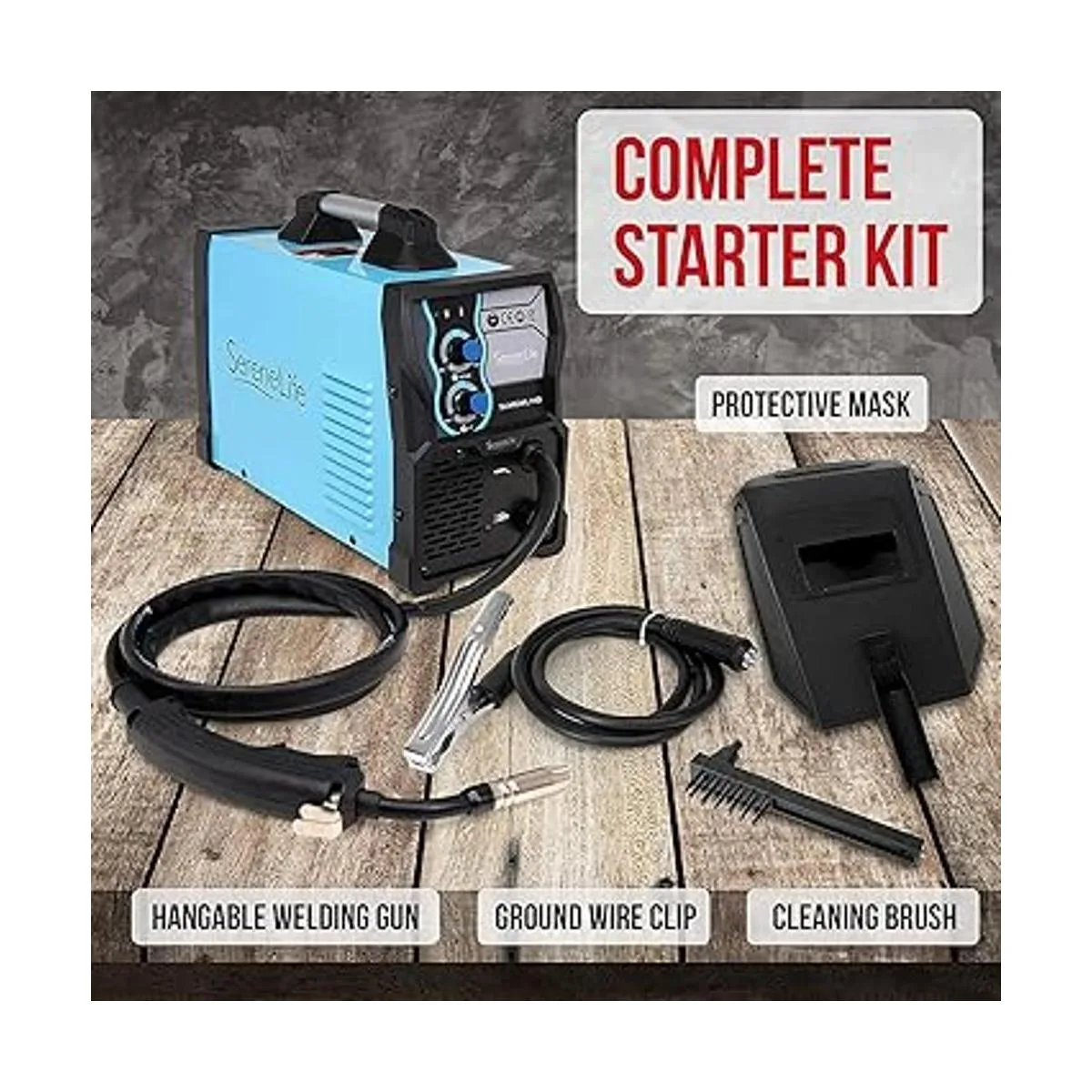 Soldador de estilo MIG de 130 amperios: el soldador Mig es más fácil para principiantes que los soldadores de estilo tig o palo. Incluye de soldadura, clip de alambre de tierra 5.2 ft, accesorios incluidos, cepillo de limpieza, máscara protectora, adaptador de 110 V