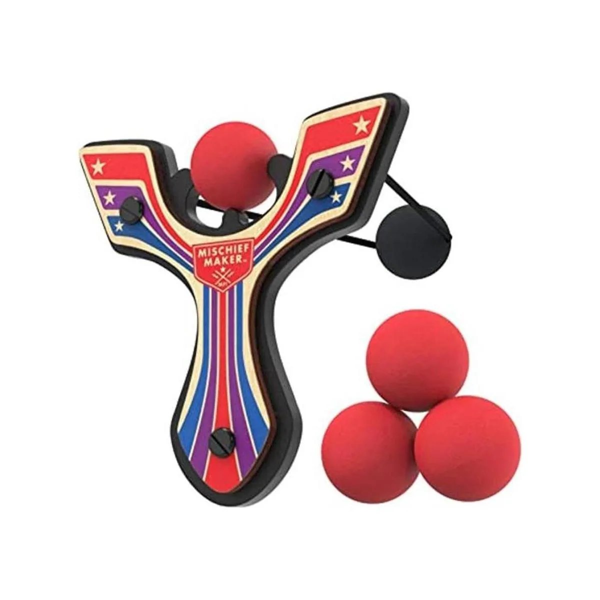 Mighty Fun Mischief Maker Racing Eslingshot de madera y bolas de espuma suave alas rojas