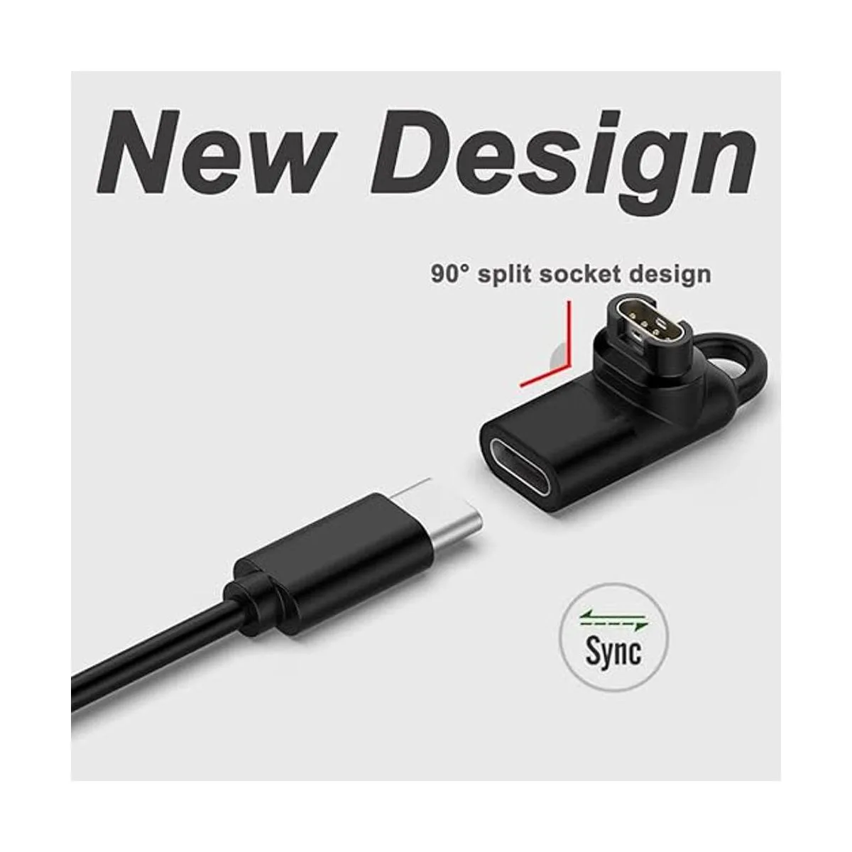 Nuevo diseño de 90 Nuestro adaptador tipo C para Garmin Watch adopta un diseño de enchufe dividido de 90, lo que hace que sea más cómodo de usar. La sección más larga se utiliza para la conexión tipo C, y la sección más corta se utiliza para la conexión del puerto de carga Garmin Watch. Haz pleno uso del espacio, conexión de línea recta no tradicional, no hay necesidad de preocuparse por la conexión incorrecta.