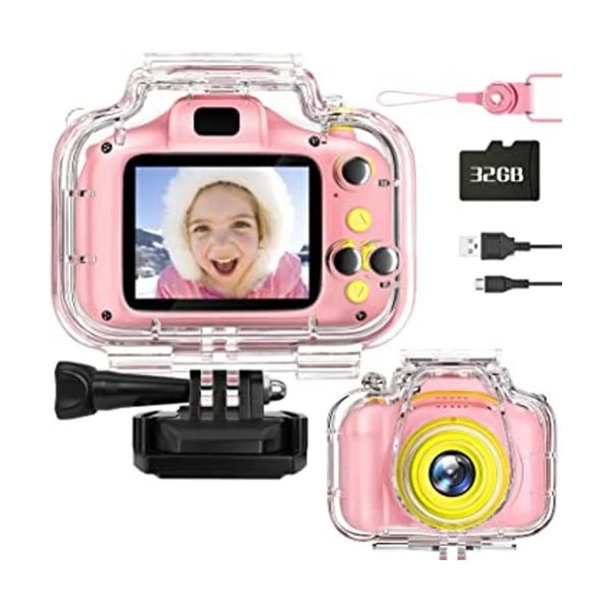 Miiulodi Cámara impermeable para niños, regalo de cumpleaños para niñas, cámara digital 1080P para niños, video subacuático, juguetes de Navidad para niños de 3, 4, 5, 6, 7, 8 años, con tarjeta de 32 GB