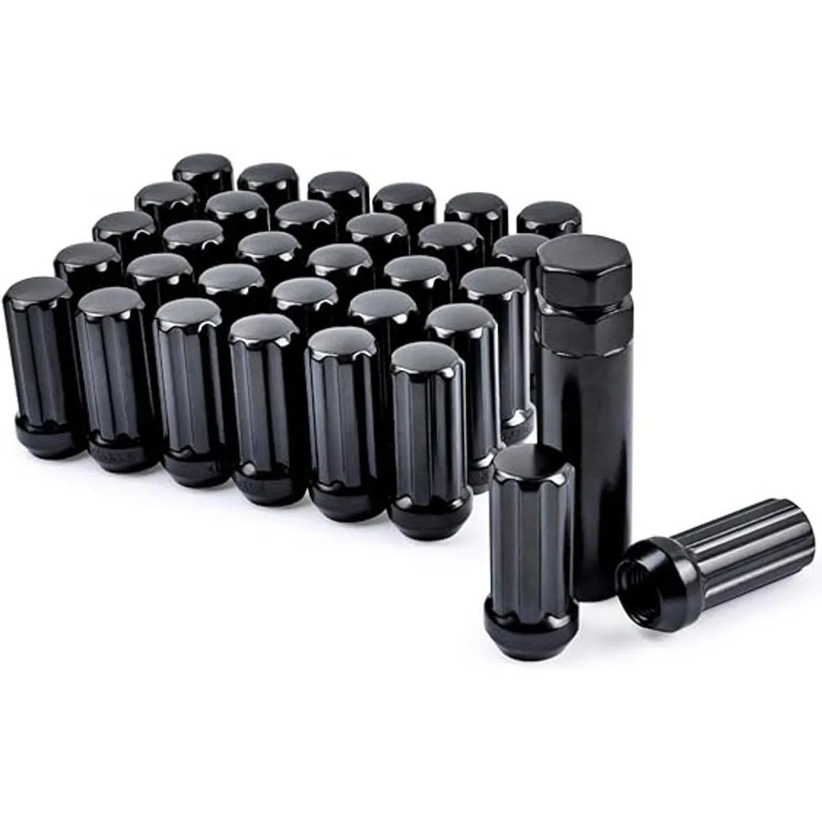 MIKKUPPA Tuerca de llanta M14x1.5 Repuesto para Chevy Silverado 1500 2500, GMC, Ford, Ram, rueda de repuesto 32 tuercas negras de extremo cerrado con 1 llave de enchufe