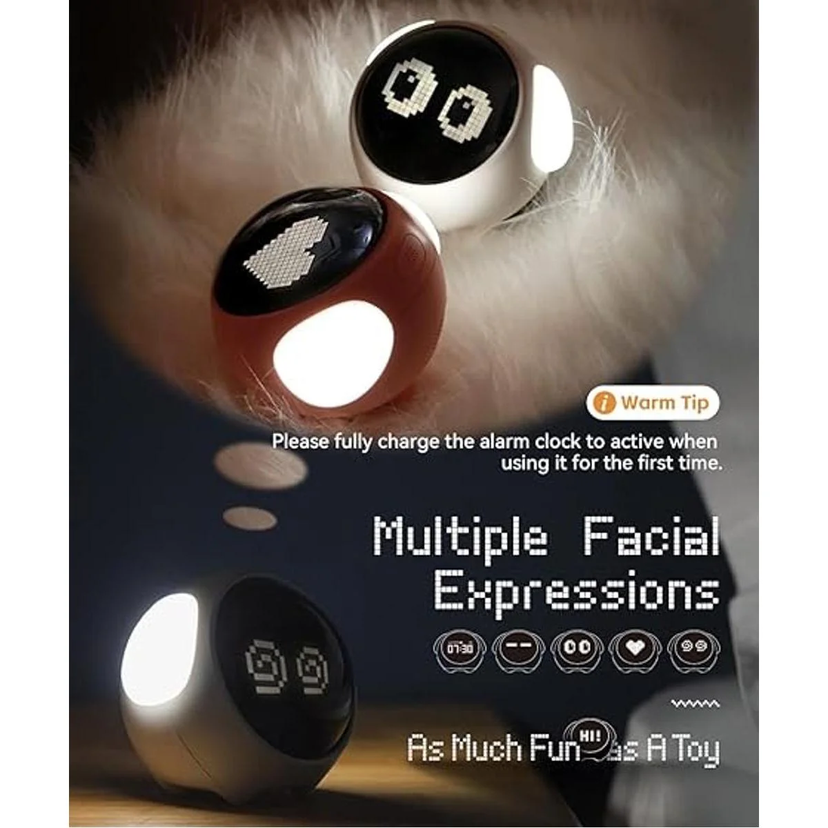 Reloj inteligente EMOJI: desde la inspiración de cachorros, MikoDream con referencia a su apariencia y expresión, diseñó el nuevo reloj despertador. Si despiertas el reloj, aparecerá expresiones bonitas y bonitas, lo que crea una interacción lúdica y hace diversión con los niños.