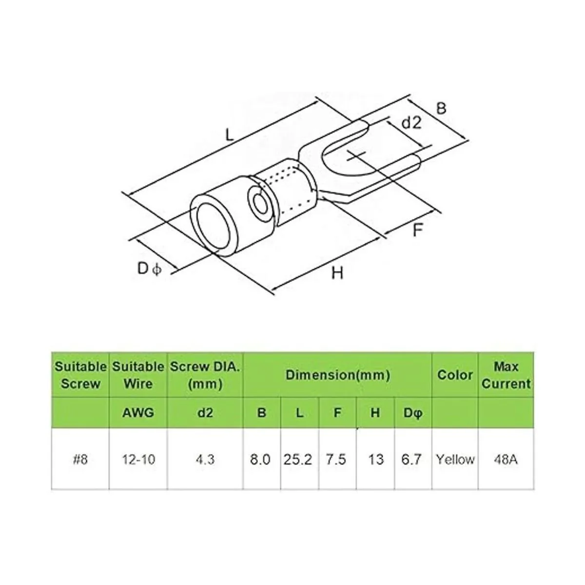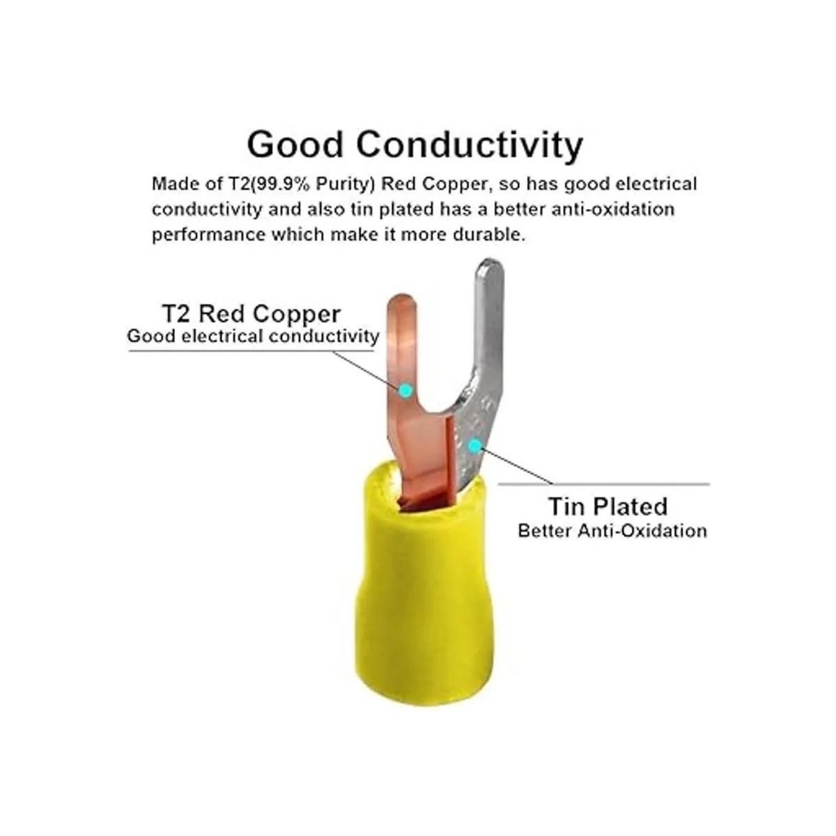 Alta calidad: el grosor cumple con el estándar internacional, por lo que nuestro conector de alambre de horquilla aislante tiene buena conductividad eléctrica y también tiene una carcasa aislada que hace que sea mejor rendimiento.