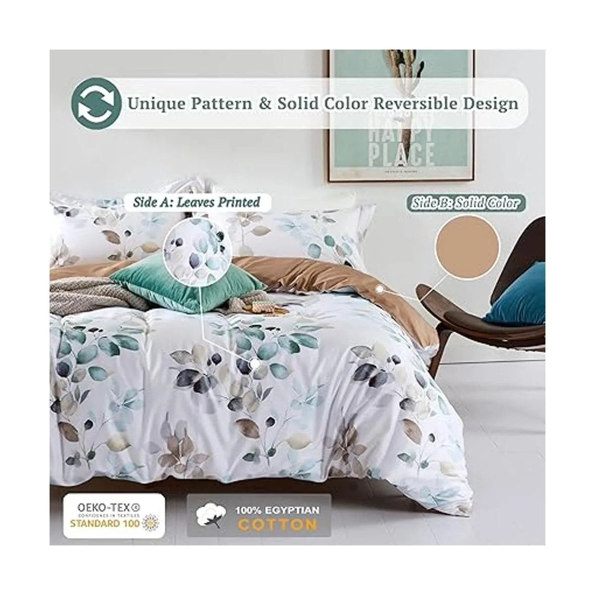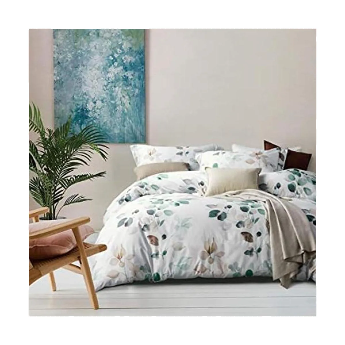 MILDLY Juego de funda de edredón de 100 algodón egipcio, juego de ropa de cama con patrón de hojas verde azulado degradado, 3 piezas, funda de edredón ultra suave y transpirable para todas las estaciones 1 funda de edredón Queen 2 fundas de almohada
