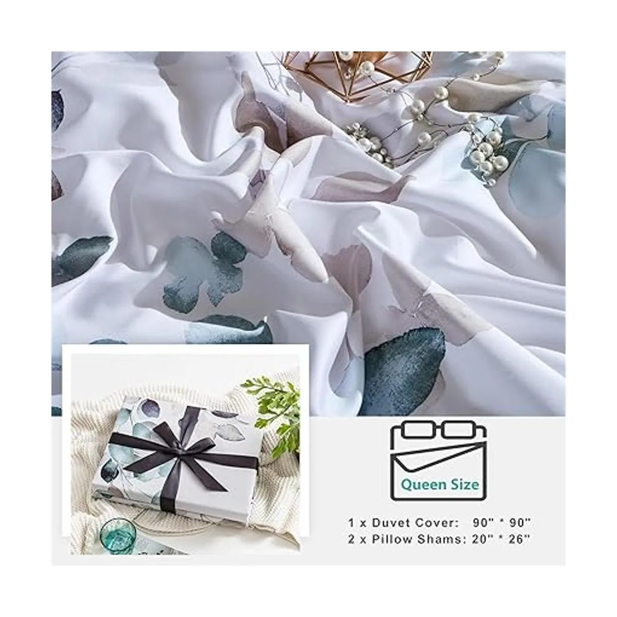 LO QUE OBTENDRS 1 funda de edredón tamaño Queen: 90 x 90 pulgadas, 2 fundas de almohada: 20 x 26 pulgadas edredón no incluido. Juego de funda de cama MILDLY con precioso empaque. Es también un gran regalo para bodas, cumpleaños, fiestas y mucho más.
