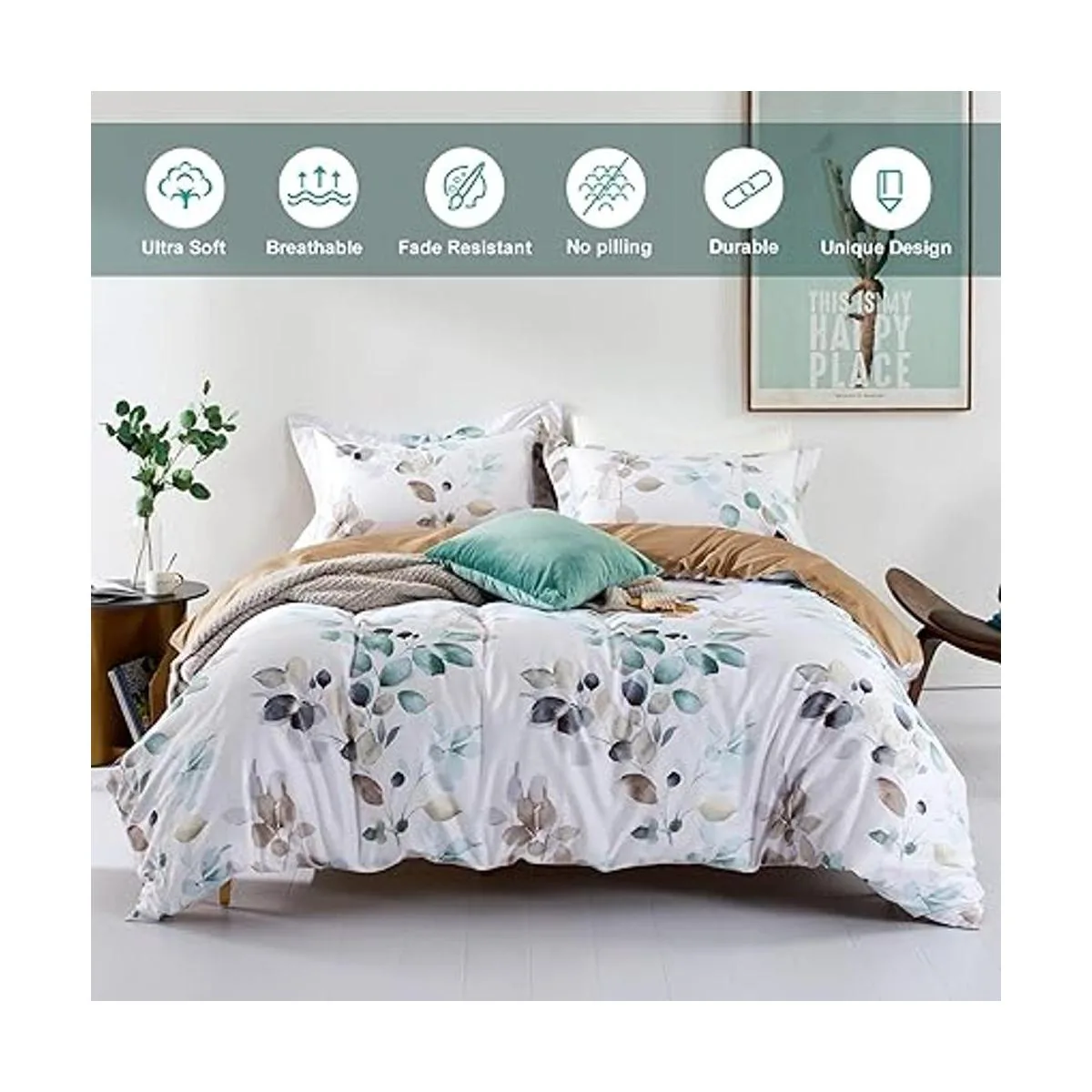 DISEO DE NICO PATRON ESTTICO El juego de funda de edredón con estampado suave cuenta con plantas naturales o escenas naturales para infundir tu dormitorio de forma más vibrante y añadir un ambiente tranquilo para mejorar tu sueño para un retiro más reparador.