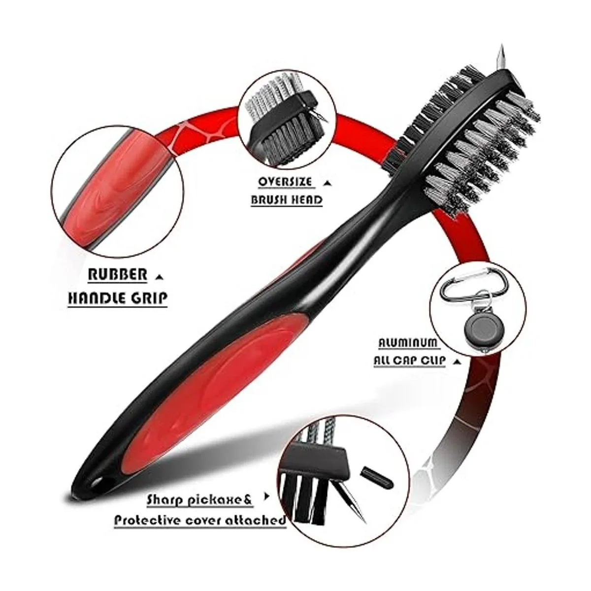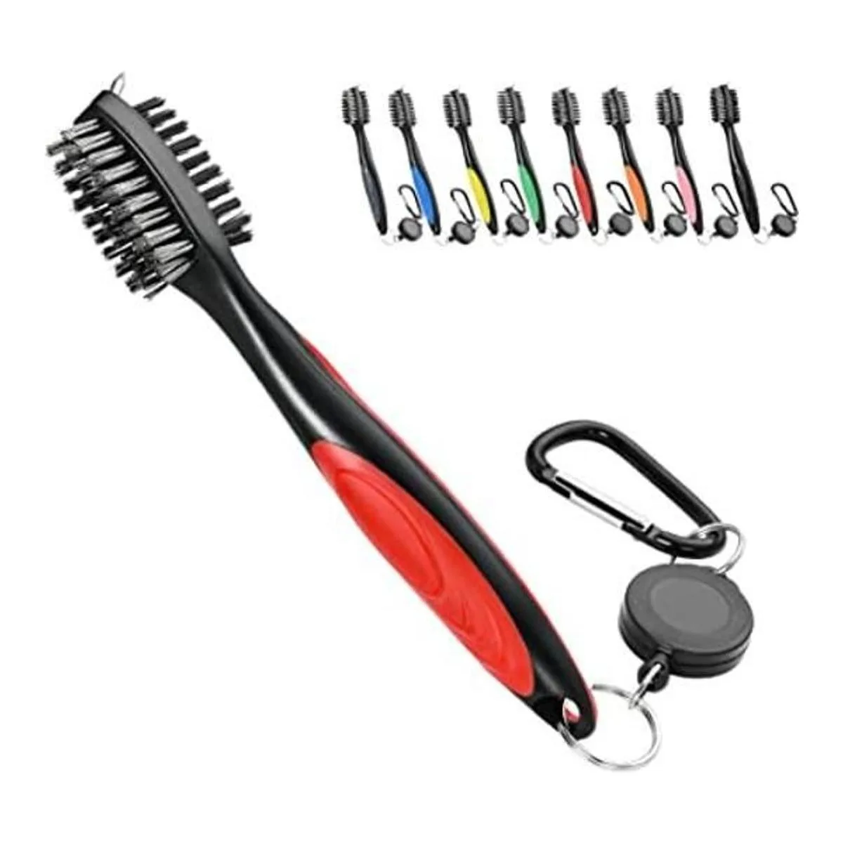 Mile High Life Kit de herramientas de cepillo para palos de golf con limpiador de ranura para club, cable de extensión retráctil y clip 8 colores