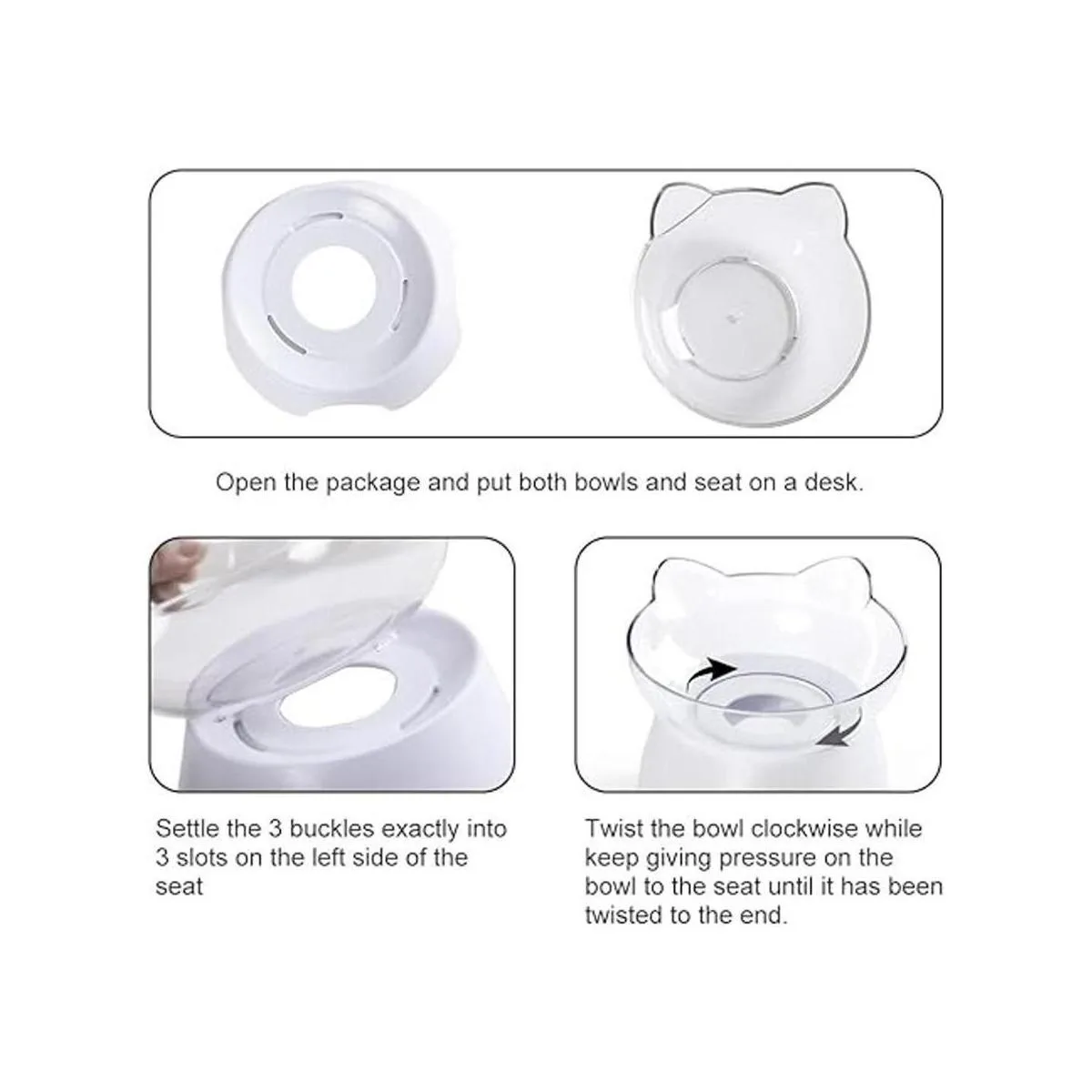 Cuencos de diseño para gatos con soporte para alimentos: plataforma inclinada de 10, altura razonable de los cuencos para mascotas que reduce el estrés del cuello, la artritis o la espalda, la mejor postura de alimentación y se adapta a diferentes gatos y perros pequeños. Diseño de separación, el soporte y el cuenco es un conjunto, es conveniente lavar el cuenco de alimentación para mascotas.