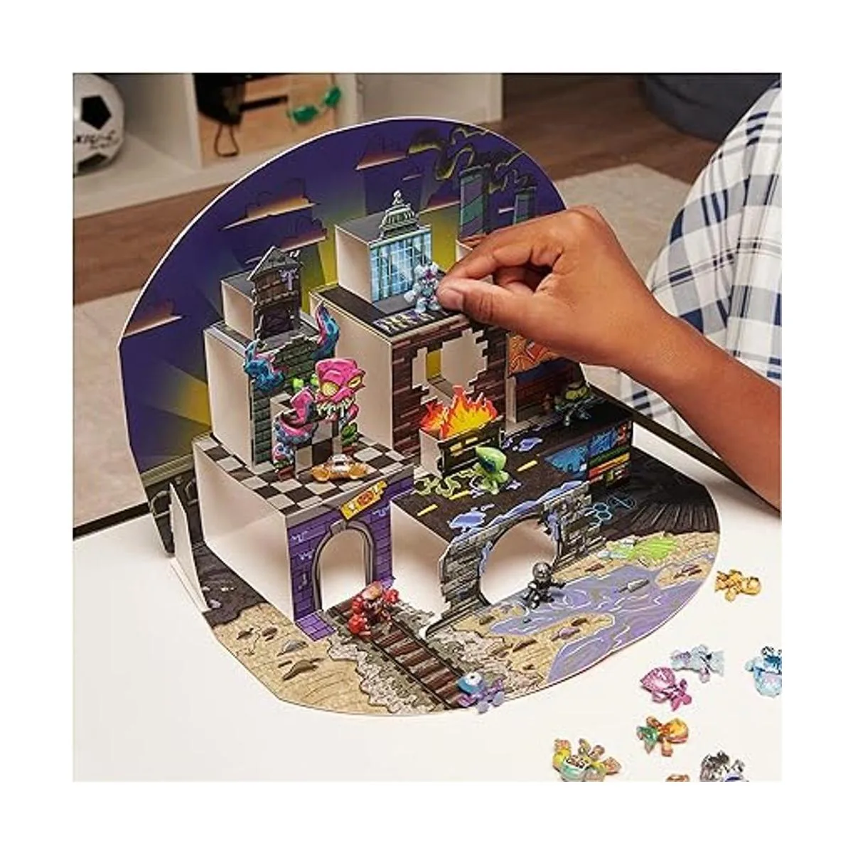 Carga y batalla: despliega para revelar tu juego completo y coleccionar los 3 estilos. Juega y almacena más de 75 guerreros para crear tu equipo de ensueño Pon a tus guerreros en el juego y entra en la batalla con el lanzador incluido para ir con o contra tus amigos