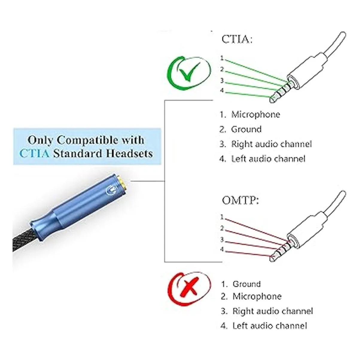 Excelente compatibilidad: el divisor de auriculares de 0.138 in te permite conectar la mayoría de dispositivos con un solo conector combinado de 0.138 in, como PC, laptop, tablet, Xbox, PS4, smartphones, etc. El diseño de carcasa metálica azul mar permite utilizar el divisor TRRS 3.5 con dispositivos caros, conveniente y elegante, una solución perfecta para llevar en tu bolsa de portátil.
