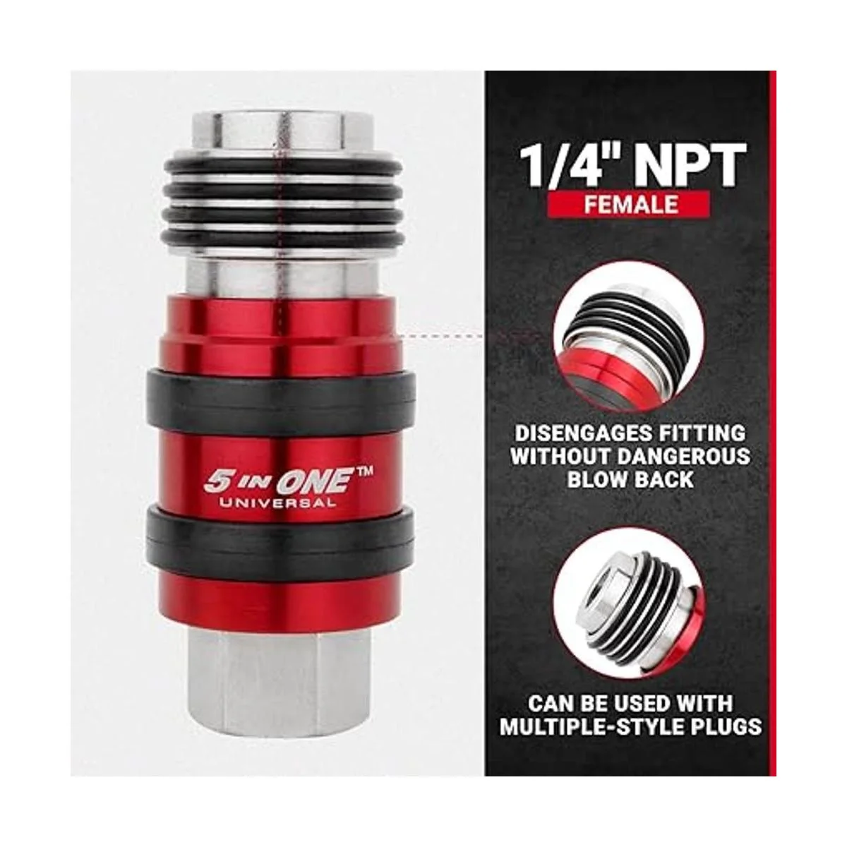 Milton S1750 Acoplador de escape de seguridad, cuerpo de 1/4″, FNPT de 1/4″, rojo