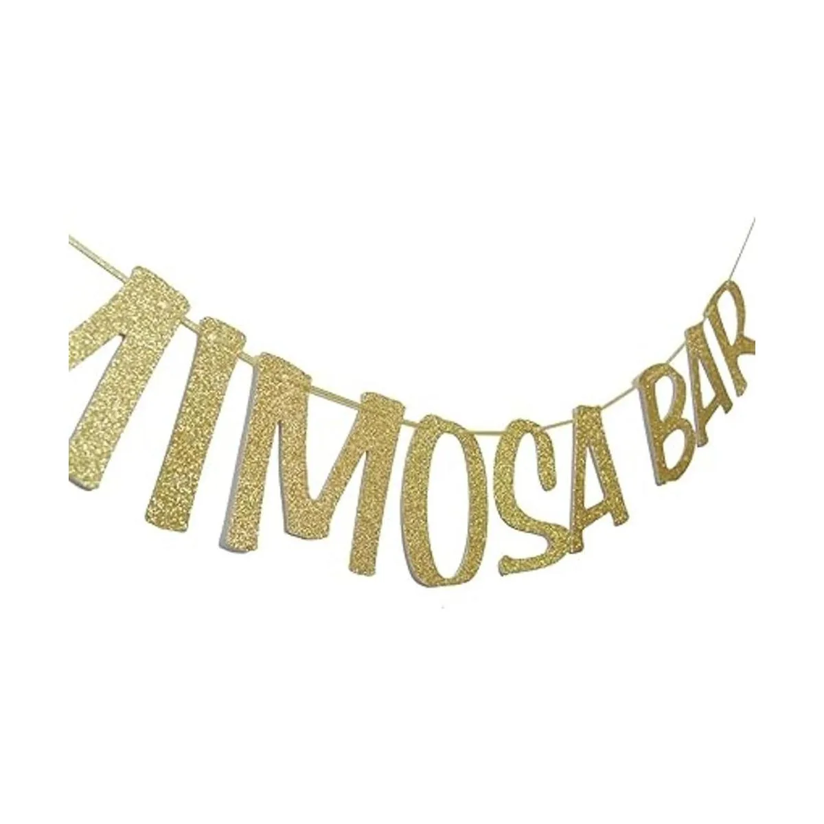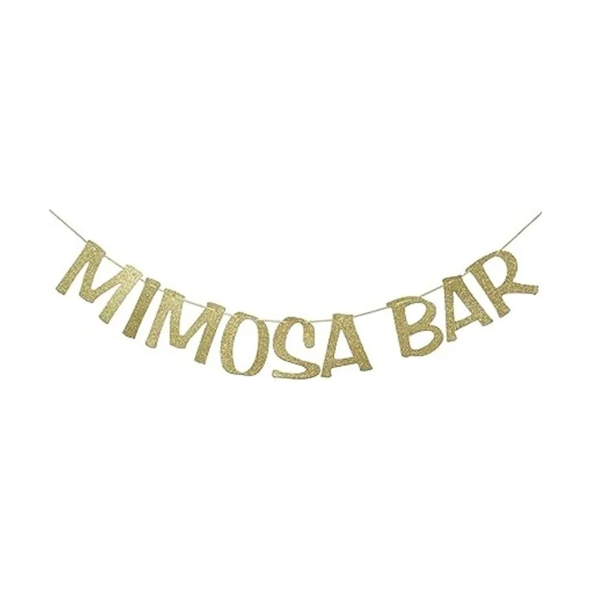 Mimosa Letrero de barra con purpurina dorada para decoración de despedida de soltera, champán, brunch para baby shower, boda, compromiso, fiesta de cumpleaños, fiesta de graduación