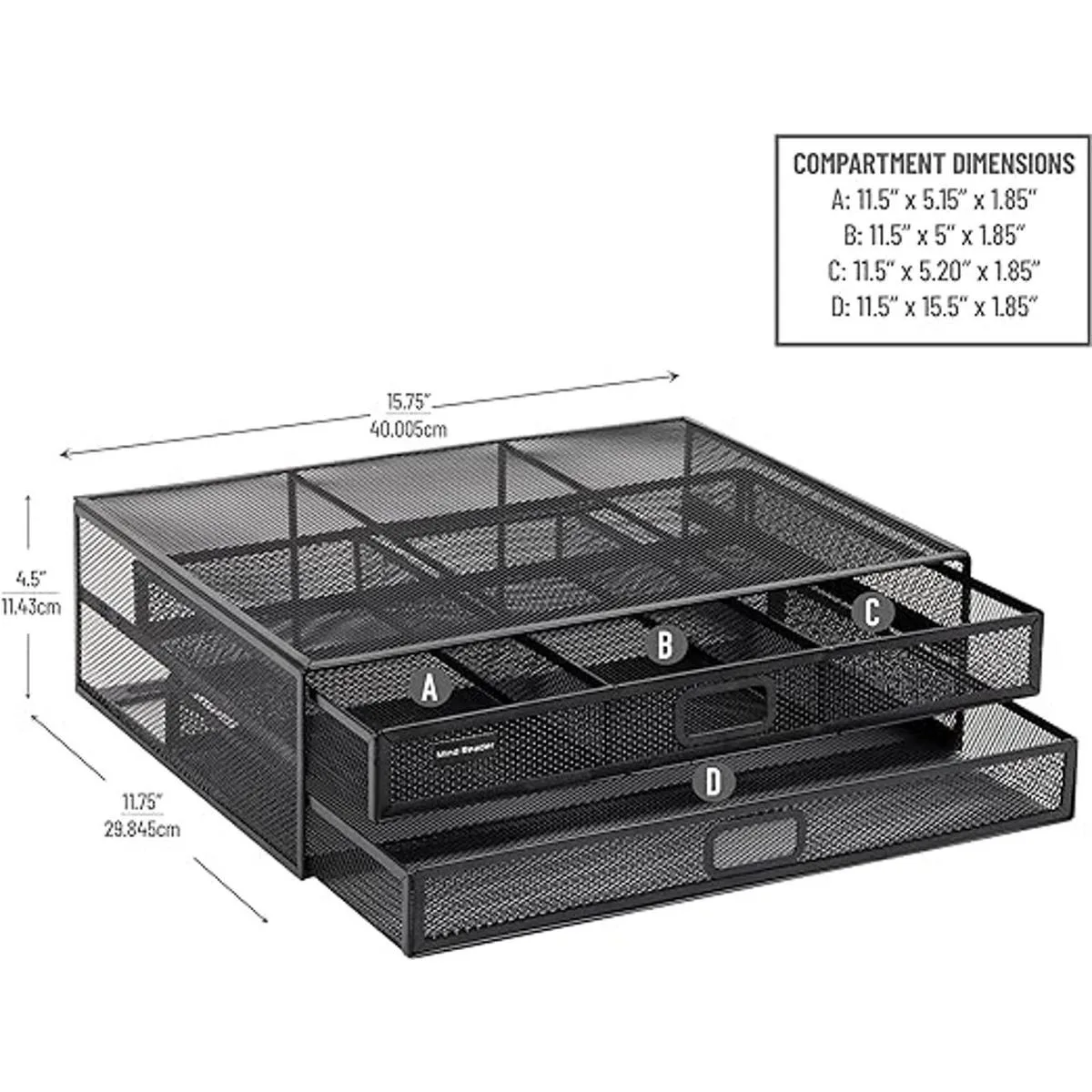Soporte multiusos: el soporte de Mind Reader es la estantería perfecta para tu hogar y/o oficina. Se puede utilizar para la pantalla de tu ordenador, PC, impresora, portátil o incluso un soporte de TV. Valor adicional: 2 cajones de almacenamiento para suministros de escuela y oficina y accesorios. Ideal para organizar el escritorio, organizar el maquillaje y todo tipo de almacenamiento.