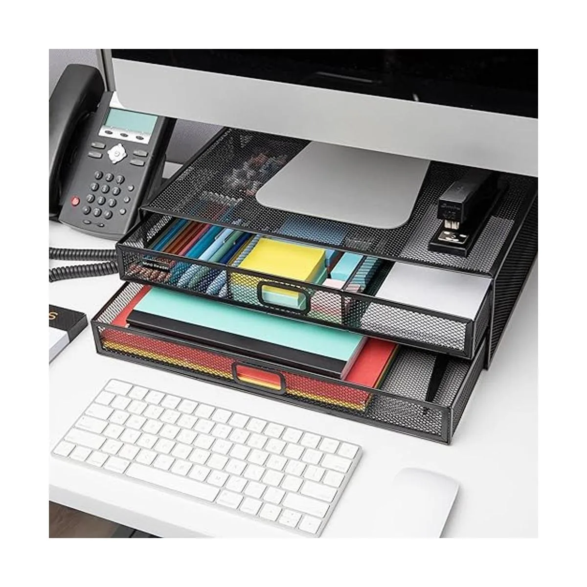 Organización y almacenamiento: mejora la organización general en tu escritorio o oficina en casa. Añade más superficie de escritorio levantando tu monitor en un soporte de escritorio o mesa. Almacena bolígrafos, lápices y suministros de oficina en el interior.