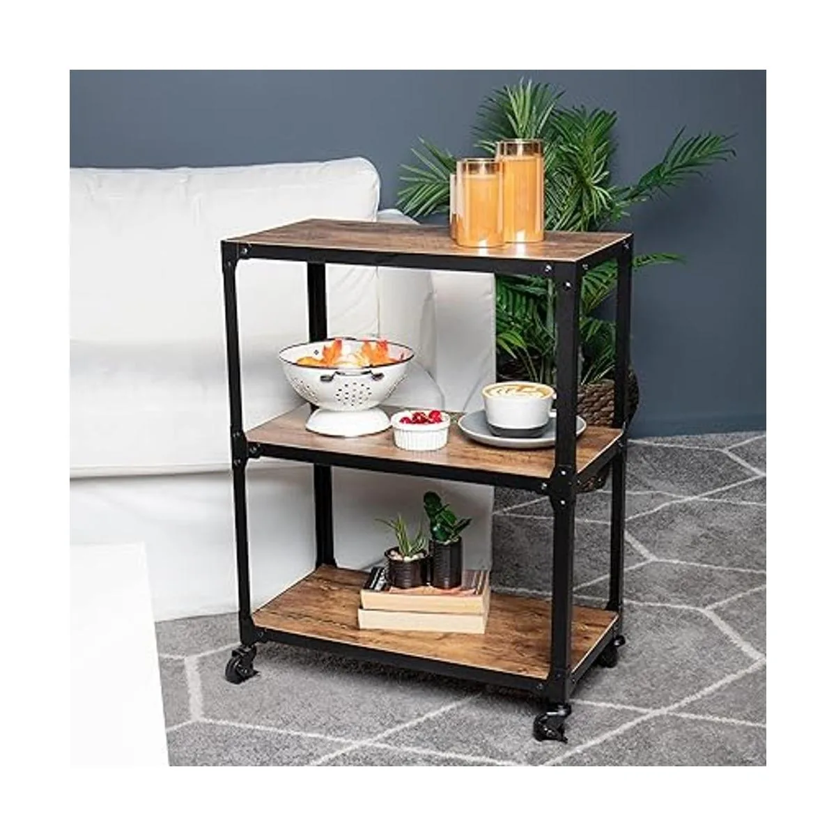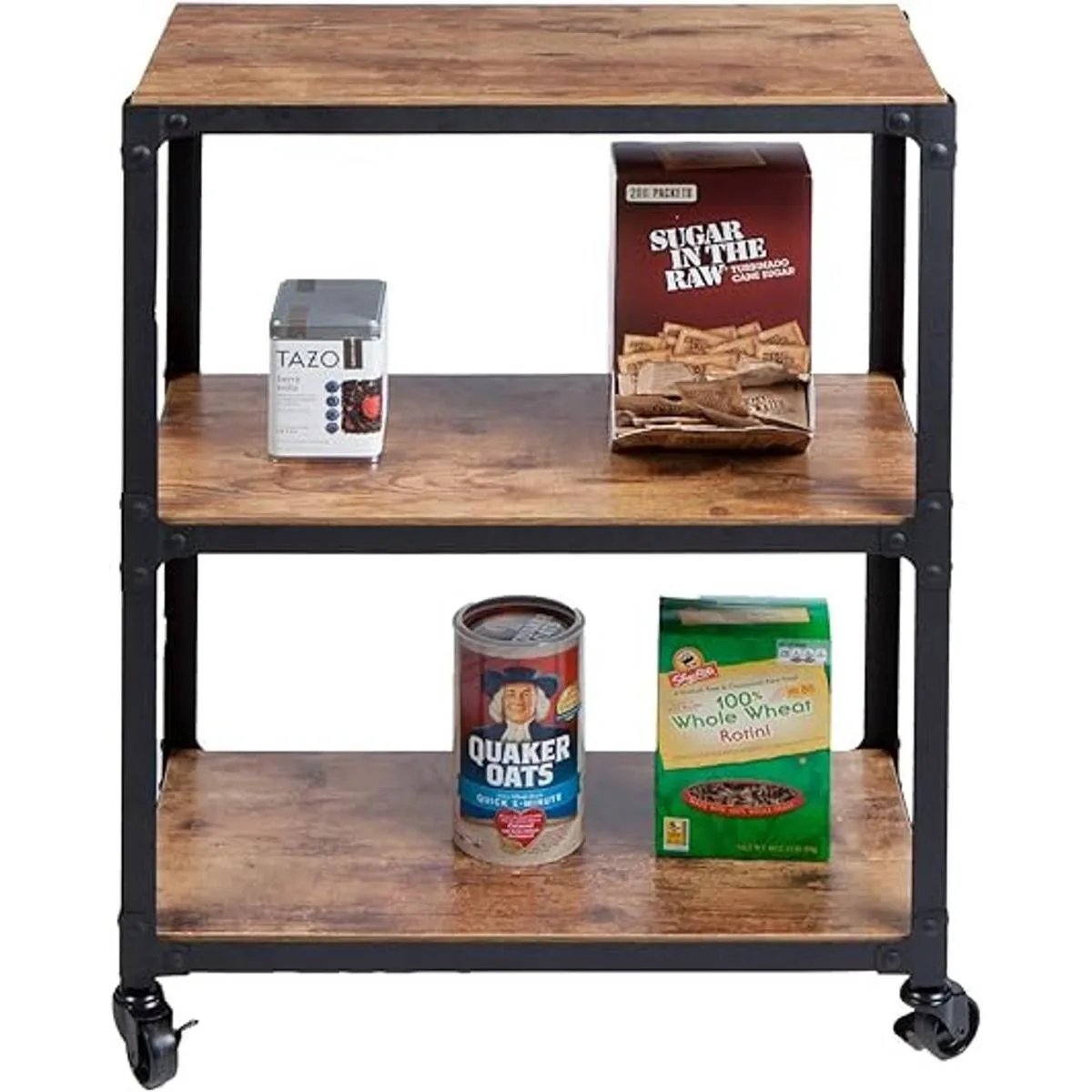 Estantes de 3 niveles: este carrito de bar ofrece 3 estantes de almacenamiento multiusos fácil y sencillo. Para vino, servir alimentos o almacenar suministros sobre la marcha, este carrito de cocina con ruedas ofrece una versatilidad de almacenamiento infinita.