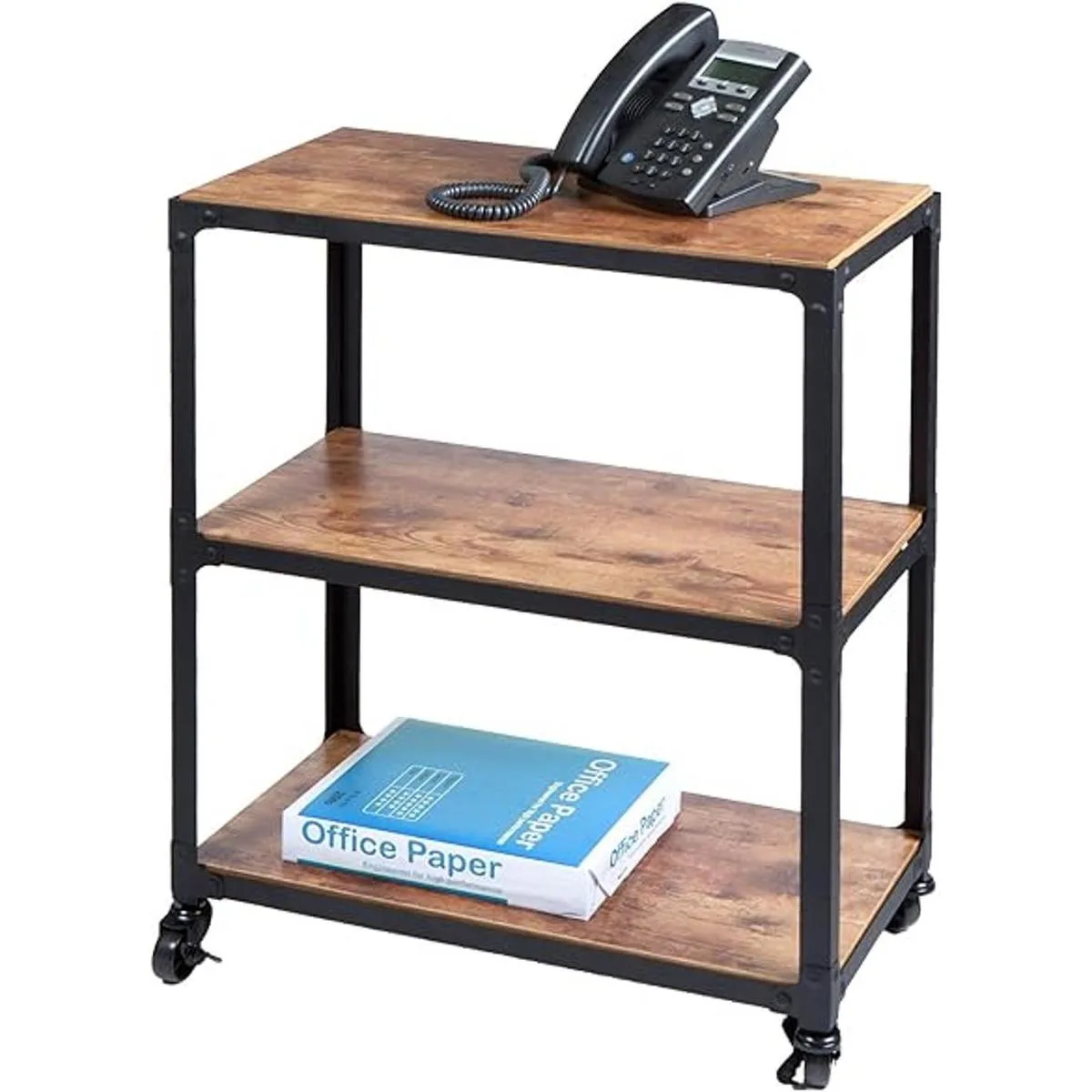 MIND READER Carrito de barra rodante 3 niveles Carrito de cocina para microondas Isla sobre ruedas, estación de café maderametal, negromarrón