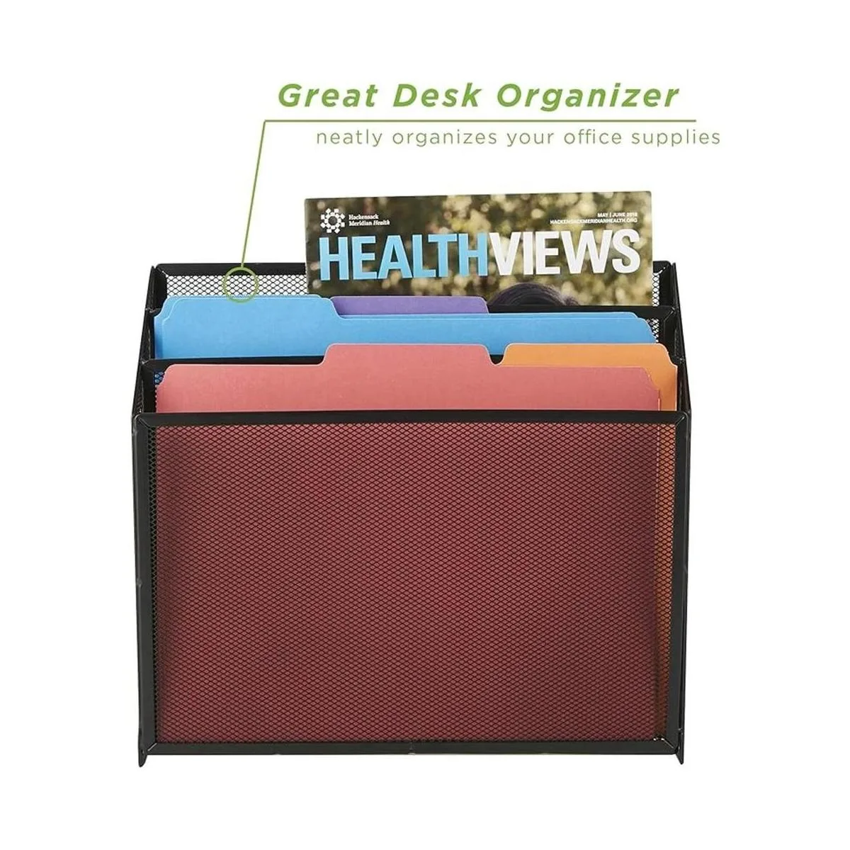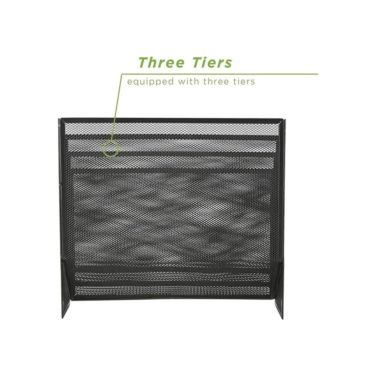 Organizador de archivos de 3 niveles: el organizador de archivos de malla metálica de Mind Reader tiene tres compartimentos para clasificar y almacenar documentos, archivos, notas, revistas y mucho más.