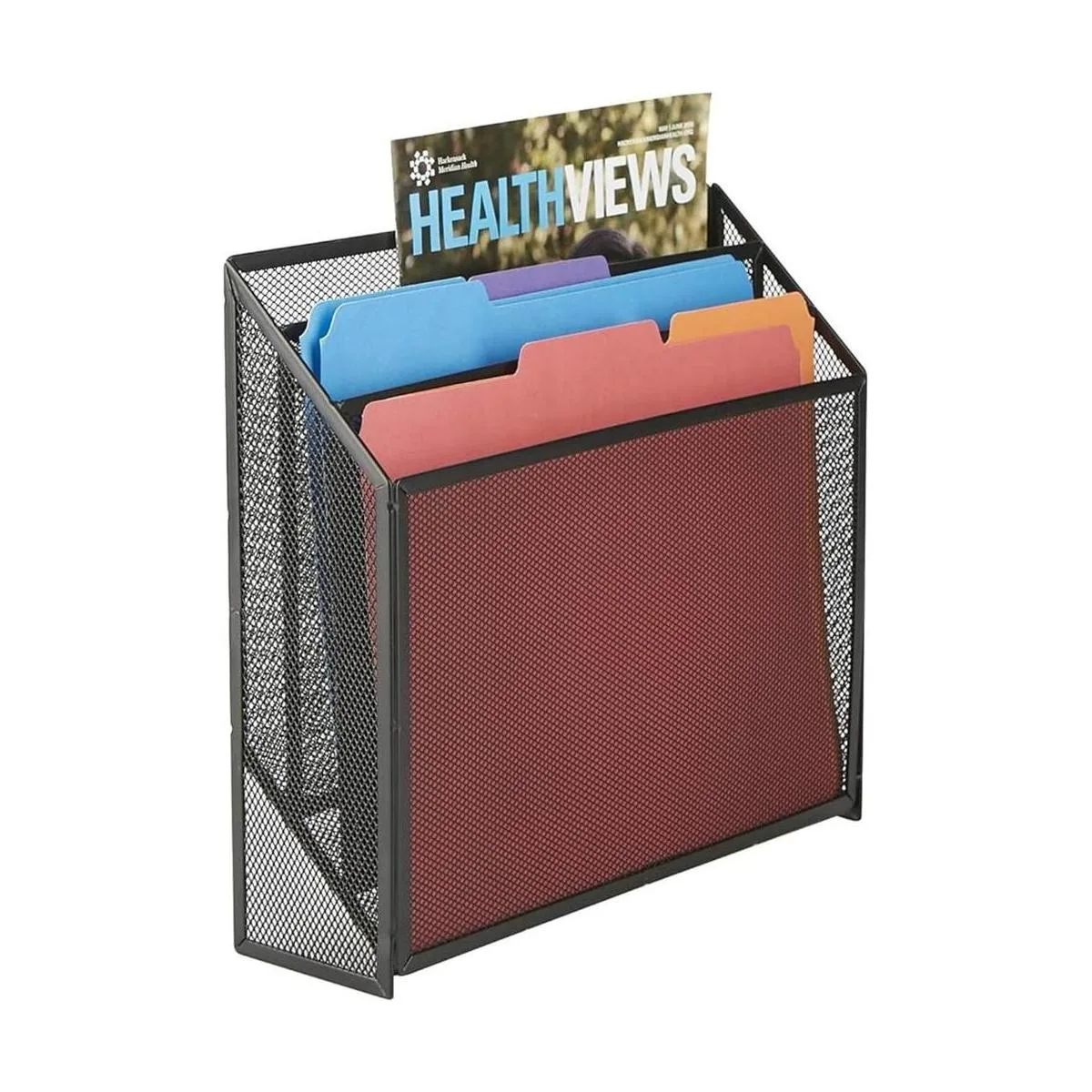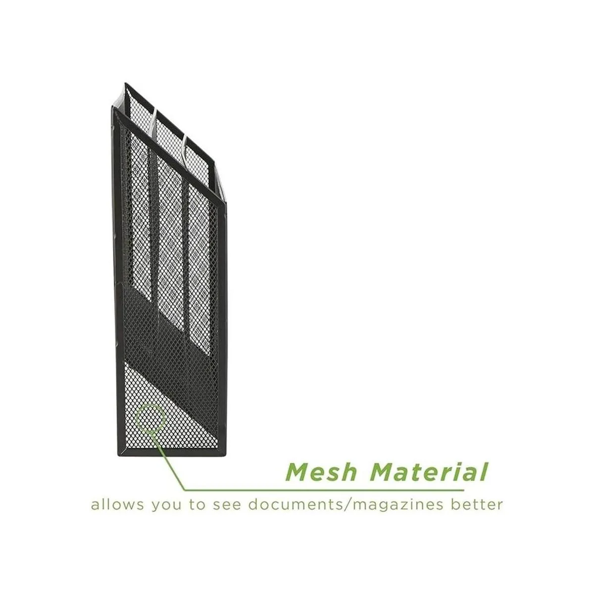 Mind Reader LETDIVBLK 3 niveles, Jumbo, soporte de malla, accesorios de escritorio de oficina, caja de archivos, organizador de revistas, color negro
