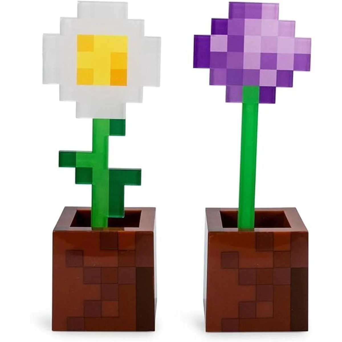 Minecraft Daisy and Allium Juego de 2 luces de estado de ánimo para macetas, lámpara de mesa de noche con luz LED para dormitorio, escritorio, sala de estar, decoración del hogar | Regalos de videojuegos y coleccionables