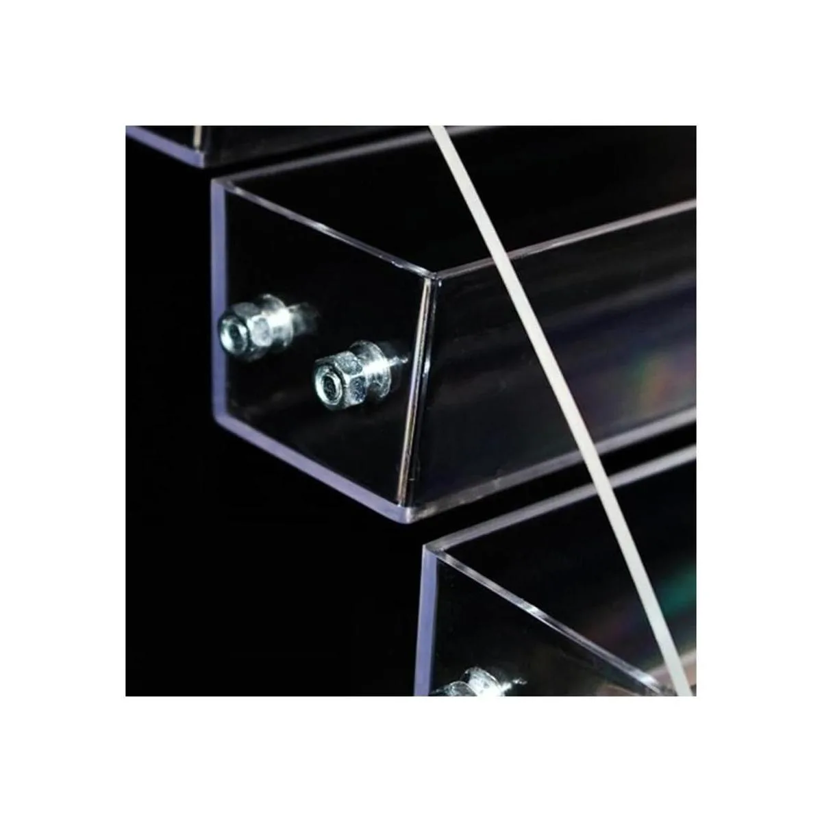 Pantalla de gafas de sol de calidad profesional con estantes transparentes y barandilla para proporcionar la máxima visibilidad para nuestras gafas. Además, con el fin de proteger la funda de arañazos durante el transporte, ponemos una película protectora en su superficie y no fue montada, retira la película y monta antes de su uso