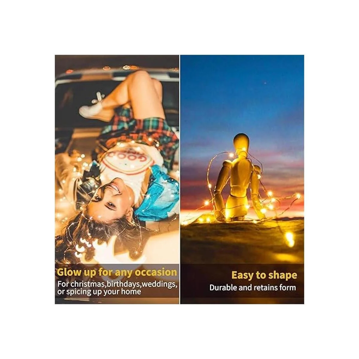 Brillante: la cadena de luces LED se compone de micro LED de color blanco cálido con chips grandes, más brillantes que las luces LED de otras guirnaldas. Decoración perfecta para bodas, fiestas y habitaciones infantiles