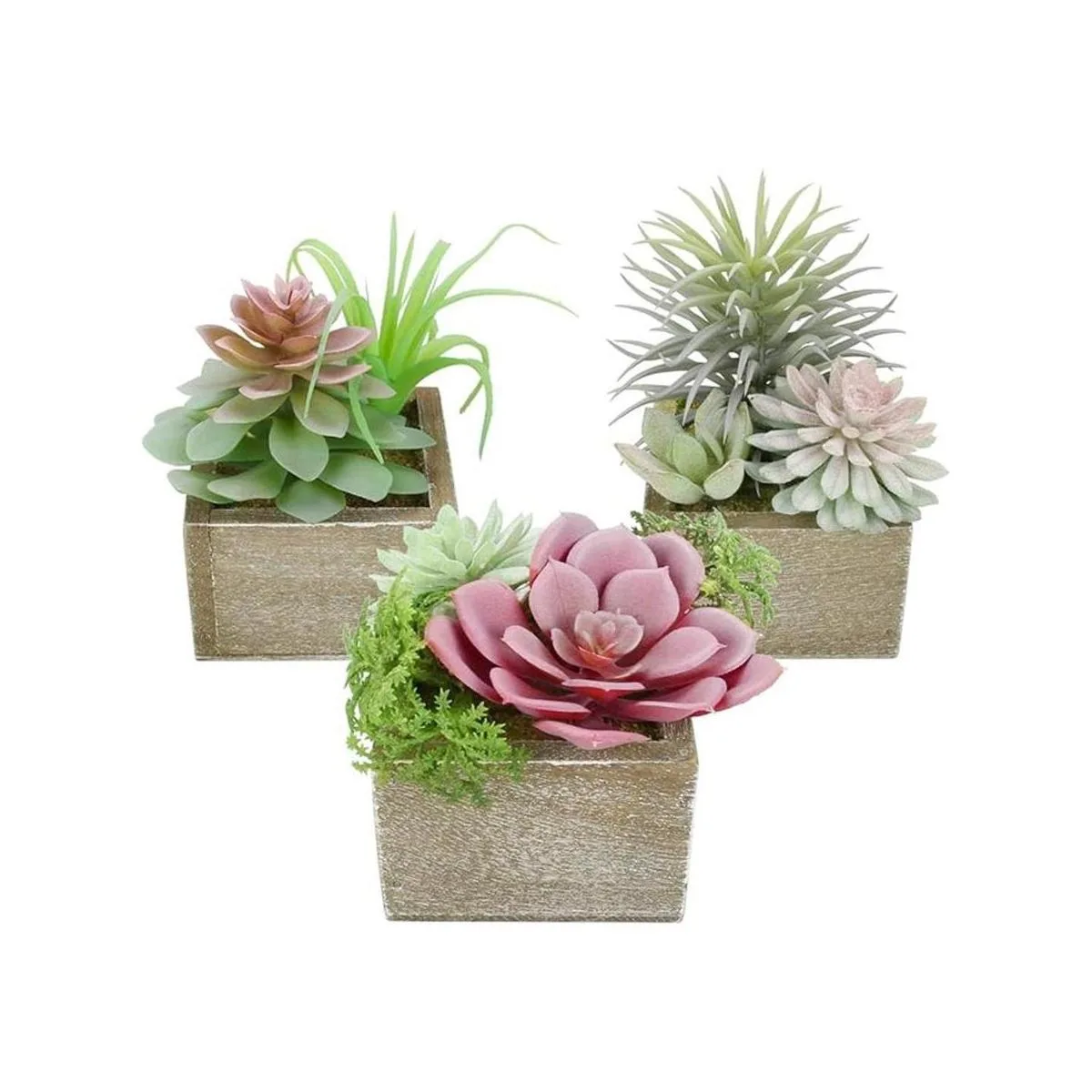 Mingfuxin Plantas suculentas artificiales, mini suculentas verdes surtidas en macetas, plantas suculentas pequeñas artificiales con madera en maceta para el hogar, oficina, sala de estar, mesa, escritorio, decoración de plantas, juego de 3