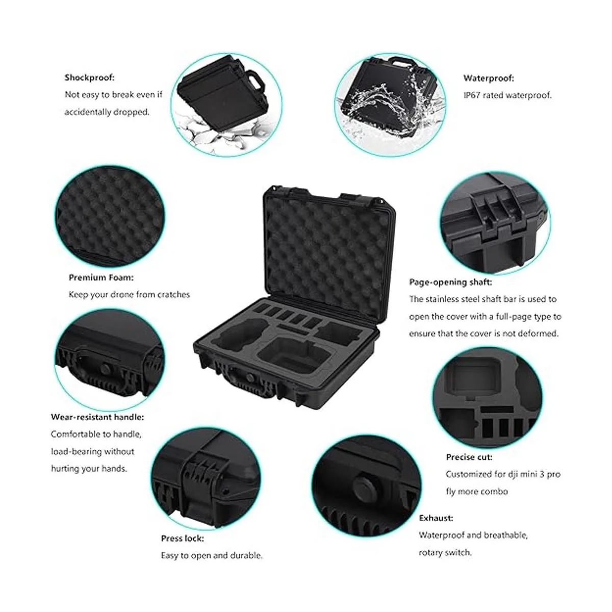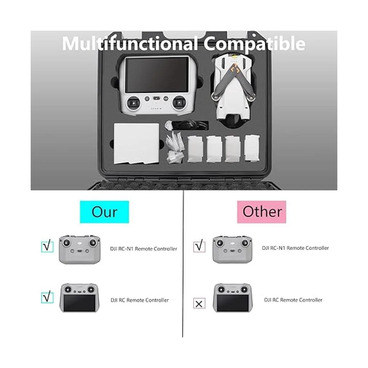 Capacidad de almacenamiento: diseño especial de almacenamiento para drone DJI Mini 3 Pro. Gran capacidad, la caja de almacenamiento puede almacenar dji mini 3 Pro drone, control remoto DJI RCN1 o control remoto DJI RC, 5 baterías de vuelo inteligentes, cargadores de batería y más accesorios.