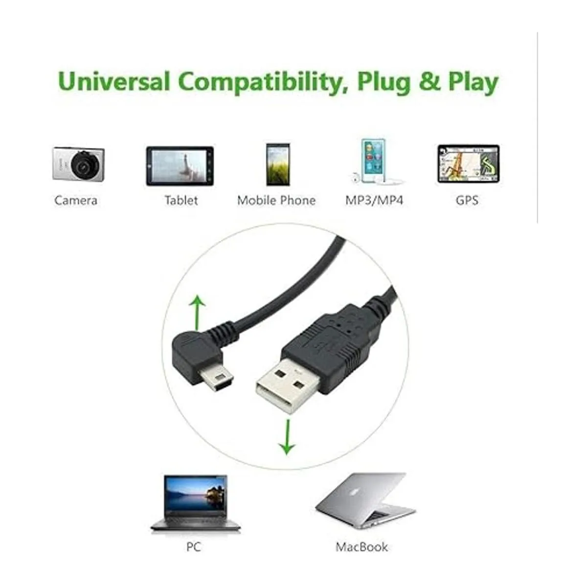 Mini adaptador USB de ángulo recto de 1.64 pies USB A macho a mini USB B de 5 pines macho Mini cable USB de ángulo izquierdo Cable de sincronización de carga de datos mini cable USB A a Mini B ángulo izquierdo 1.6 ft