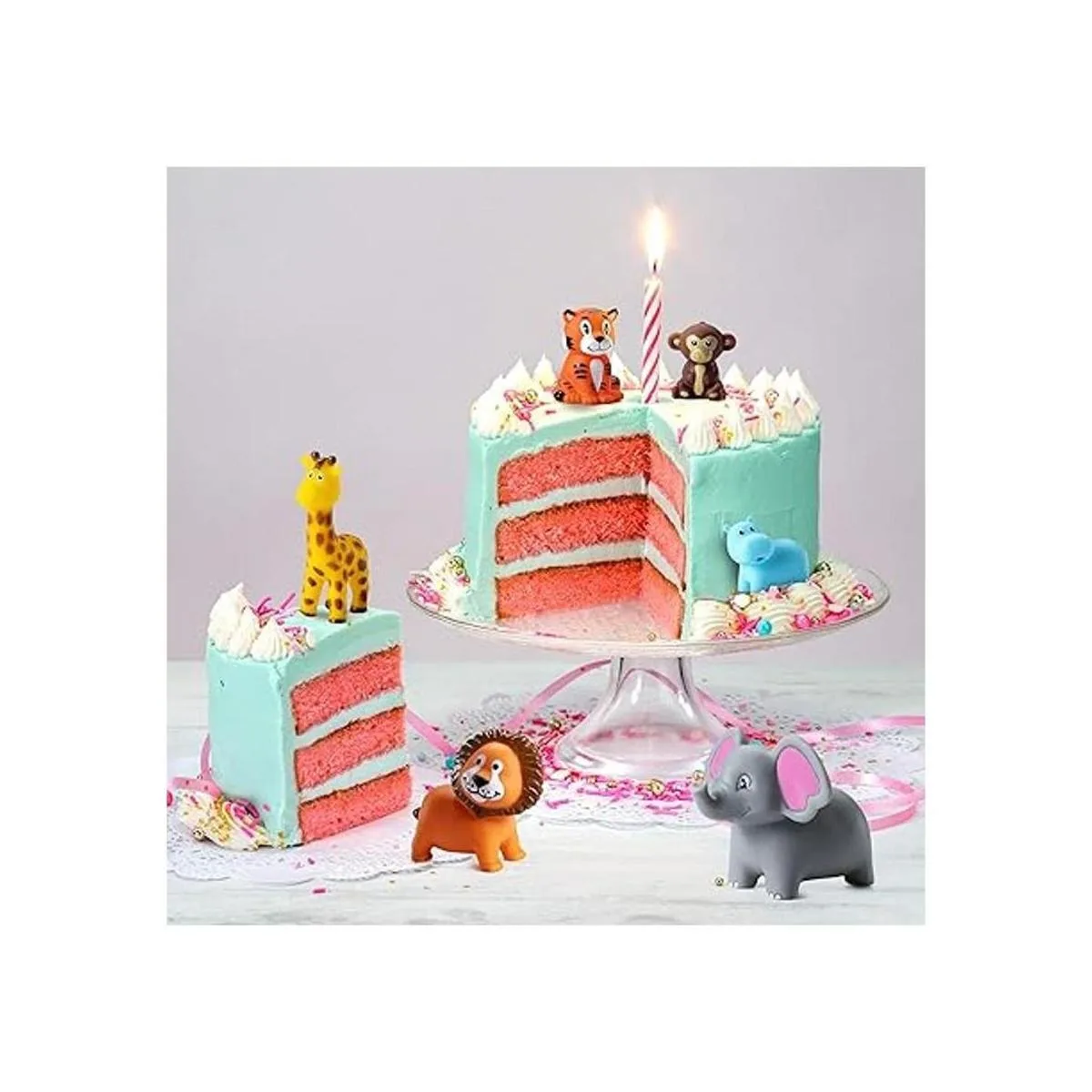 Mini animales de zoológico exprimibles paquete de 12 animales de la selva, juguete de bañera de chorro para niños, para decoración de pasteles de fiesta, fiesta de cumpleaños de baby shower, rellenos de calcetines y decoraciones