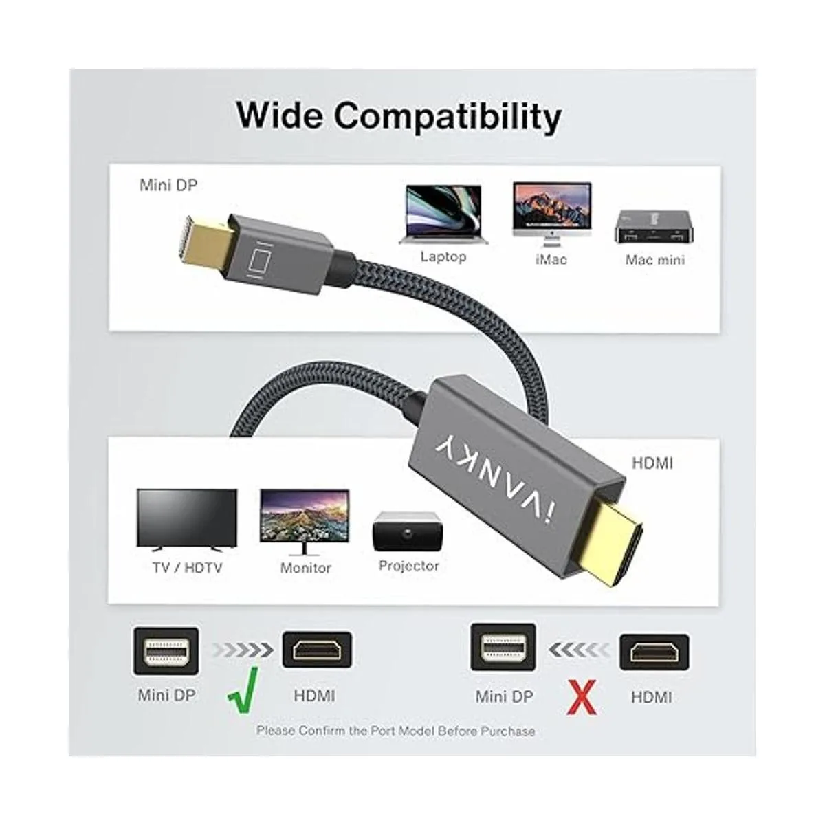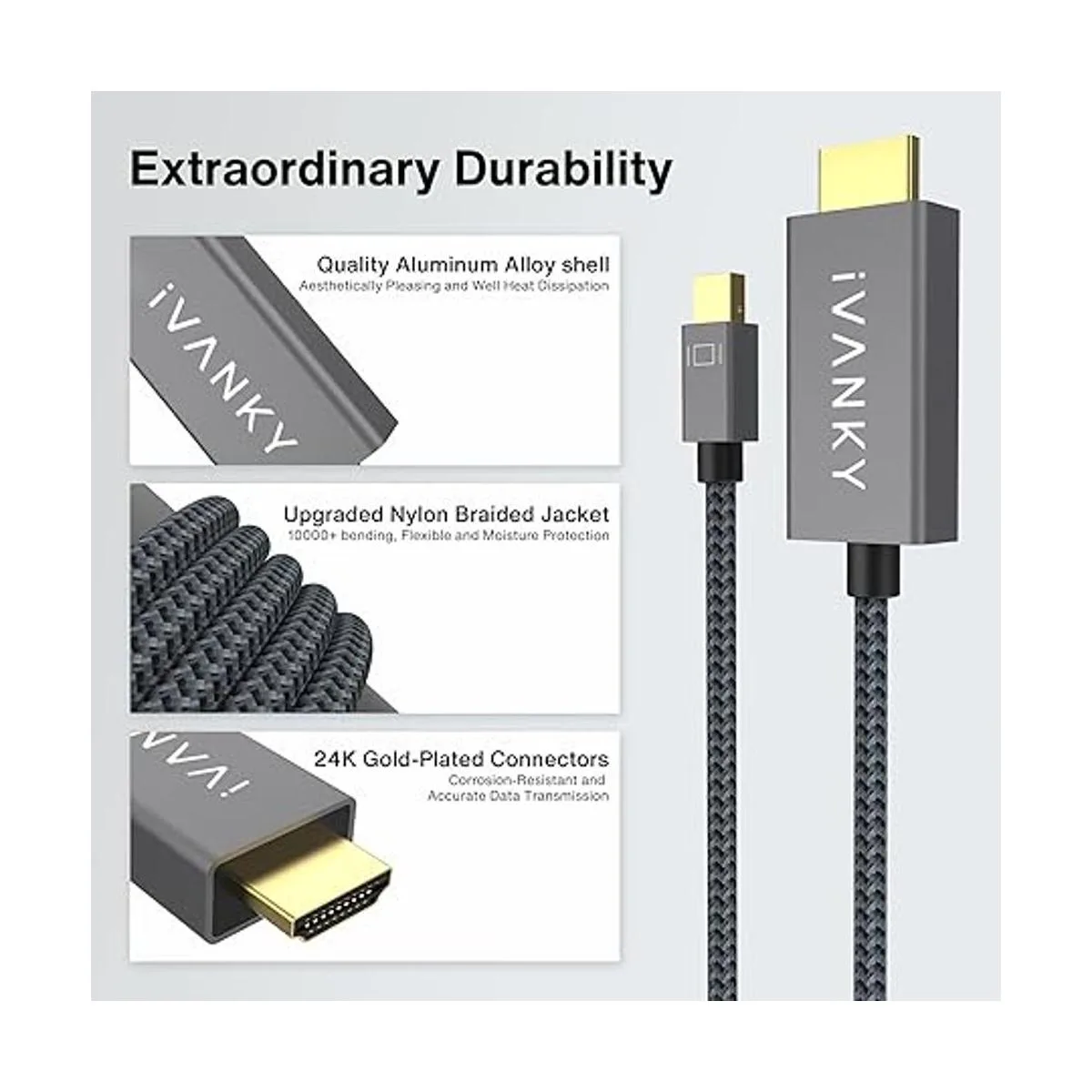 Mini cable DisplayPort a HDMI, iVANKY Mini DP Thunderbolt a HDMI cable de 6.6 pies, nailon trenzado, carcasa de aluminio, solución de chip óptima para MacBook AirPro, Surface ProDock, monitor, proyector y más1080P