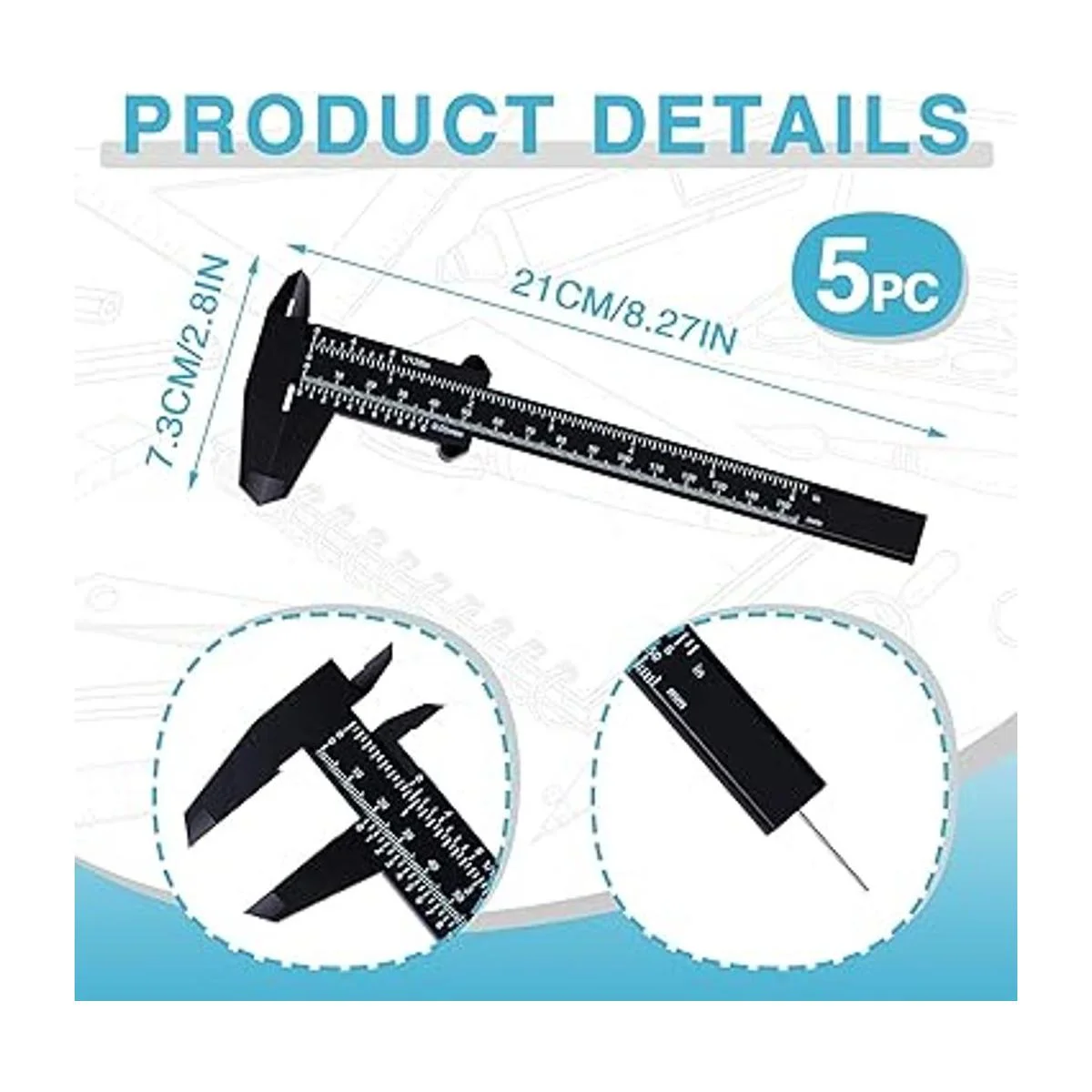 El paquete incluye: 5 mini calibradores vernier de plástico con color negro en el paquete, suficiente para usar o compartir con amigos y familia