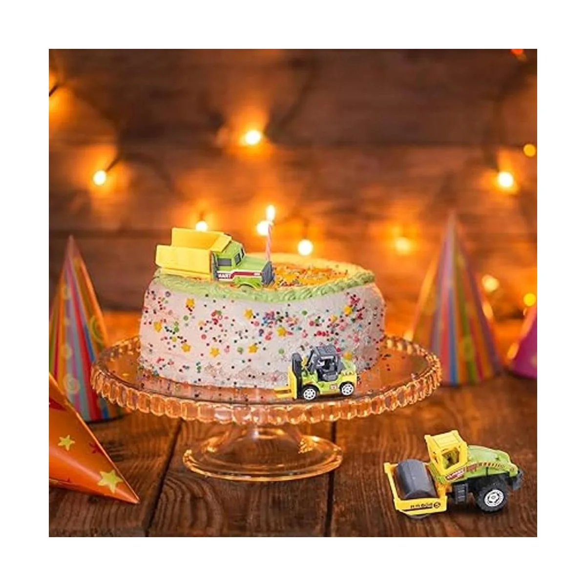 Los vehículos de construcción pequeños se pueden utilizar como recuerdos de fiesta o como decoración de tartas de construcción Ponlos en el pastel y luego regálalos a los niños después de que ensucien su postre. Limpia el glaseado primero, luego los niños se divertirán jugando con ellos.