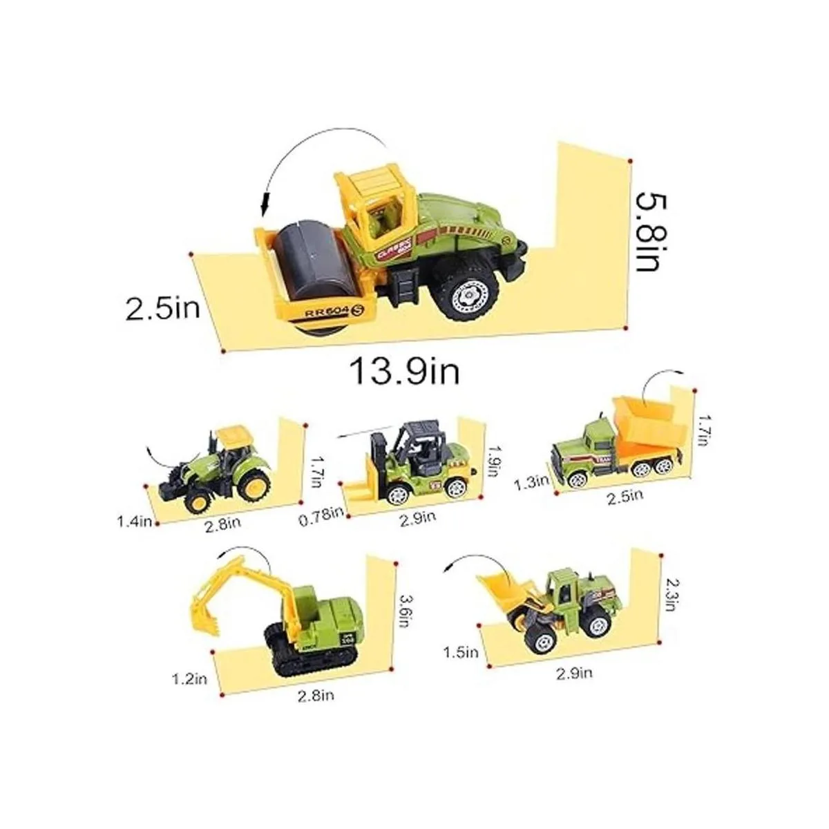 Mini camiones de construcción, juguetes de construcción pequeños, 6 piezas de vehículos de construcción fundidos a presión, juguetes de tractor de metal, juguete de carga de arena, juego de carretilla elevadora, rodillo volcador, tractor, excavadora, excavadora