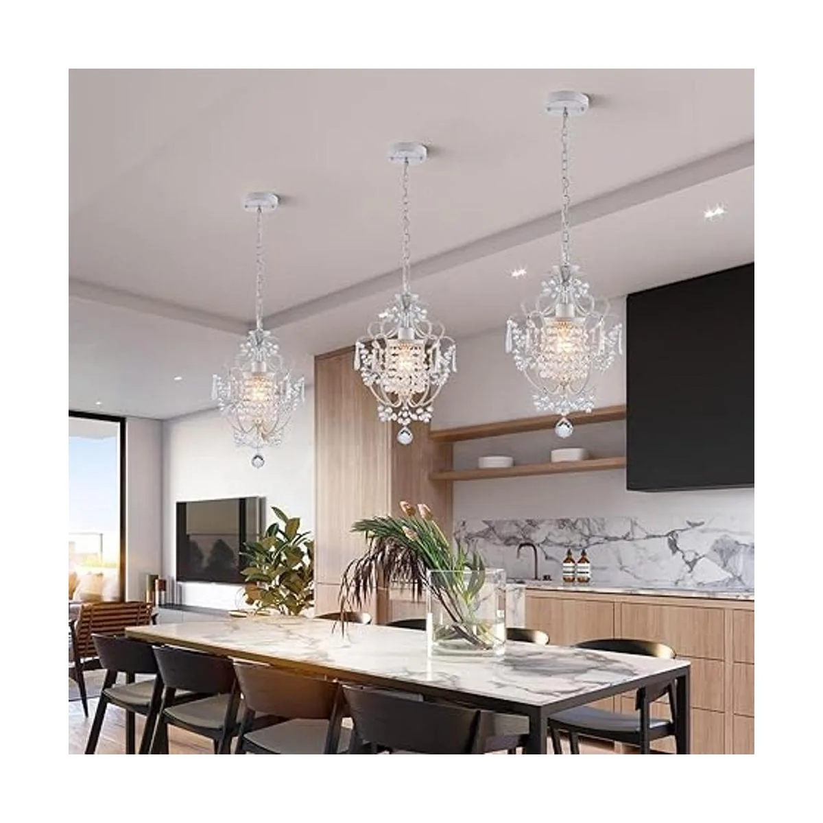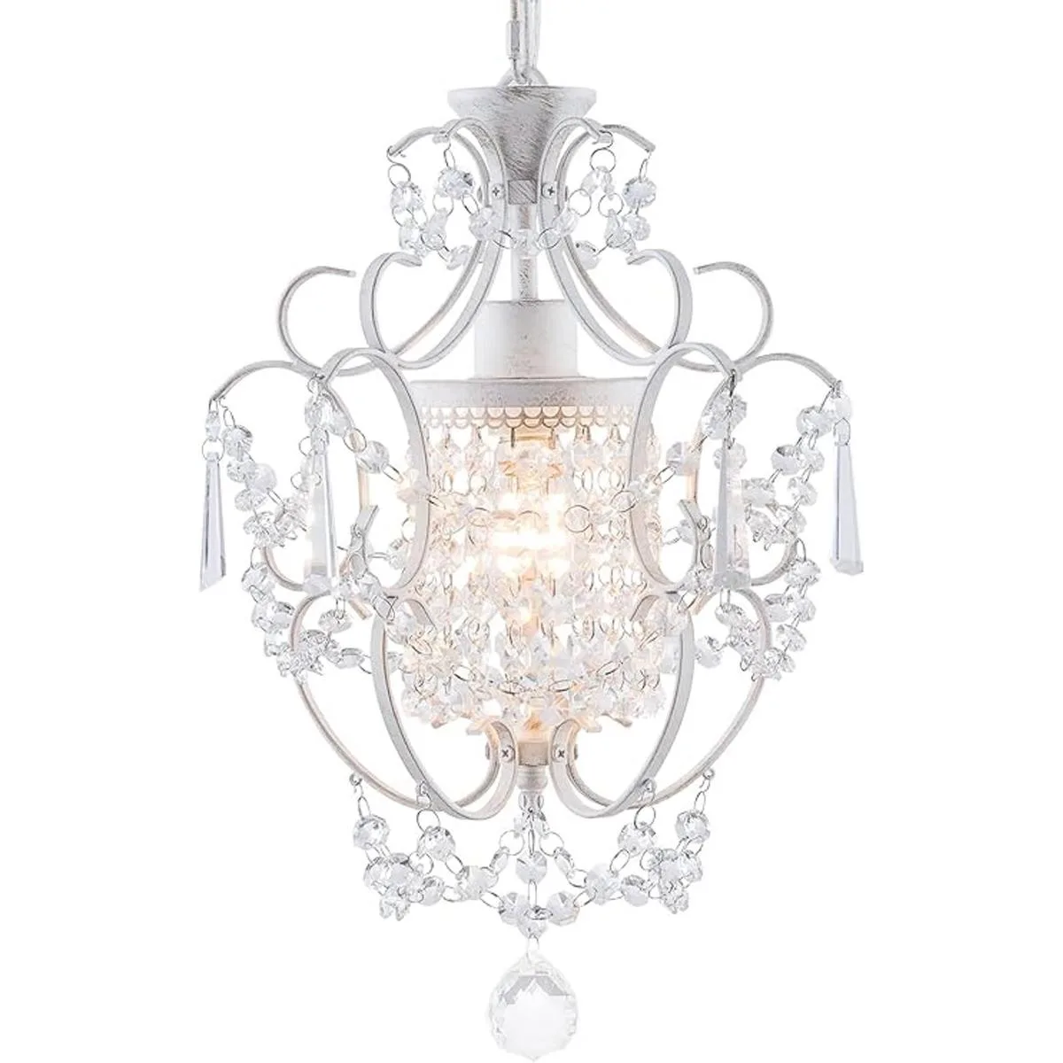 Mini candelabro moderno, lámparas de cristal retro blanco para montaje en techo, 1 luz pequeña candelabro de cristal para dormitorio, elegante iluminación colgante de cristal para niñas, comedor, armario, cocina, isla