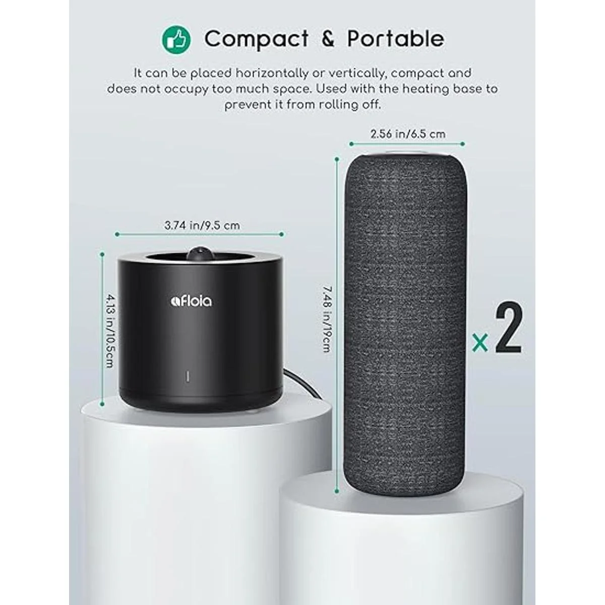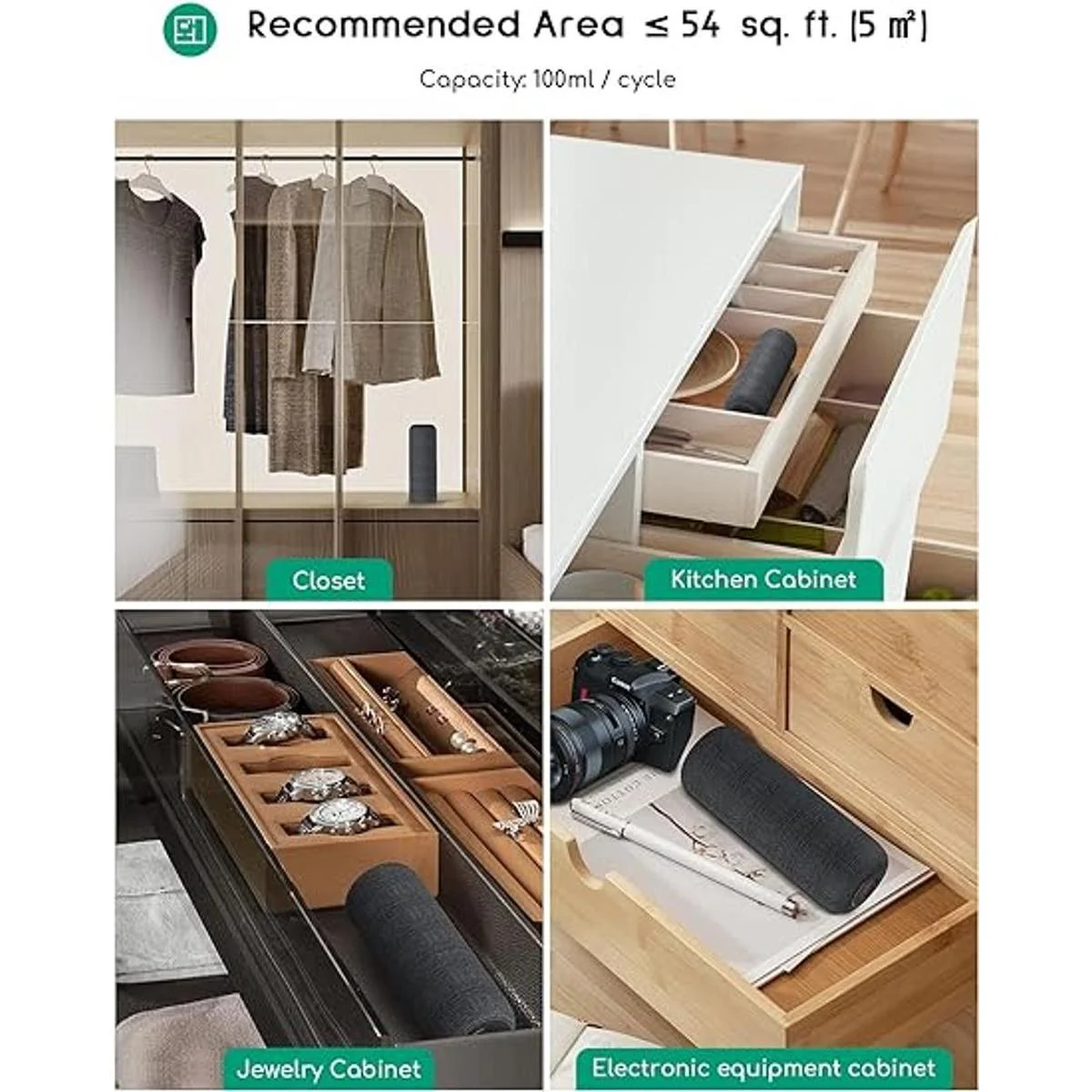 Mini portátil Este deshumidificador portátil elimina hasta 3.4 fl oz de humedad 86 F, 80 RH y deshumidifica hasta 54 pies cuadrados. Solo la base de calefacción está cableada, y la barra de deshumidificación en sí es inalámbrica. El palo de deshumidificación se puede deshumidificar directamente y no necesita ser utilizado en la base de calefacción todo el tiempo. El diseño de tamaño mini es perfecto para espacios pequeños, baños, armarios, cajas fuertes para armas, estanterías, bolsas de gimnasio, coches, RV, barco, etc.